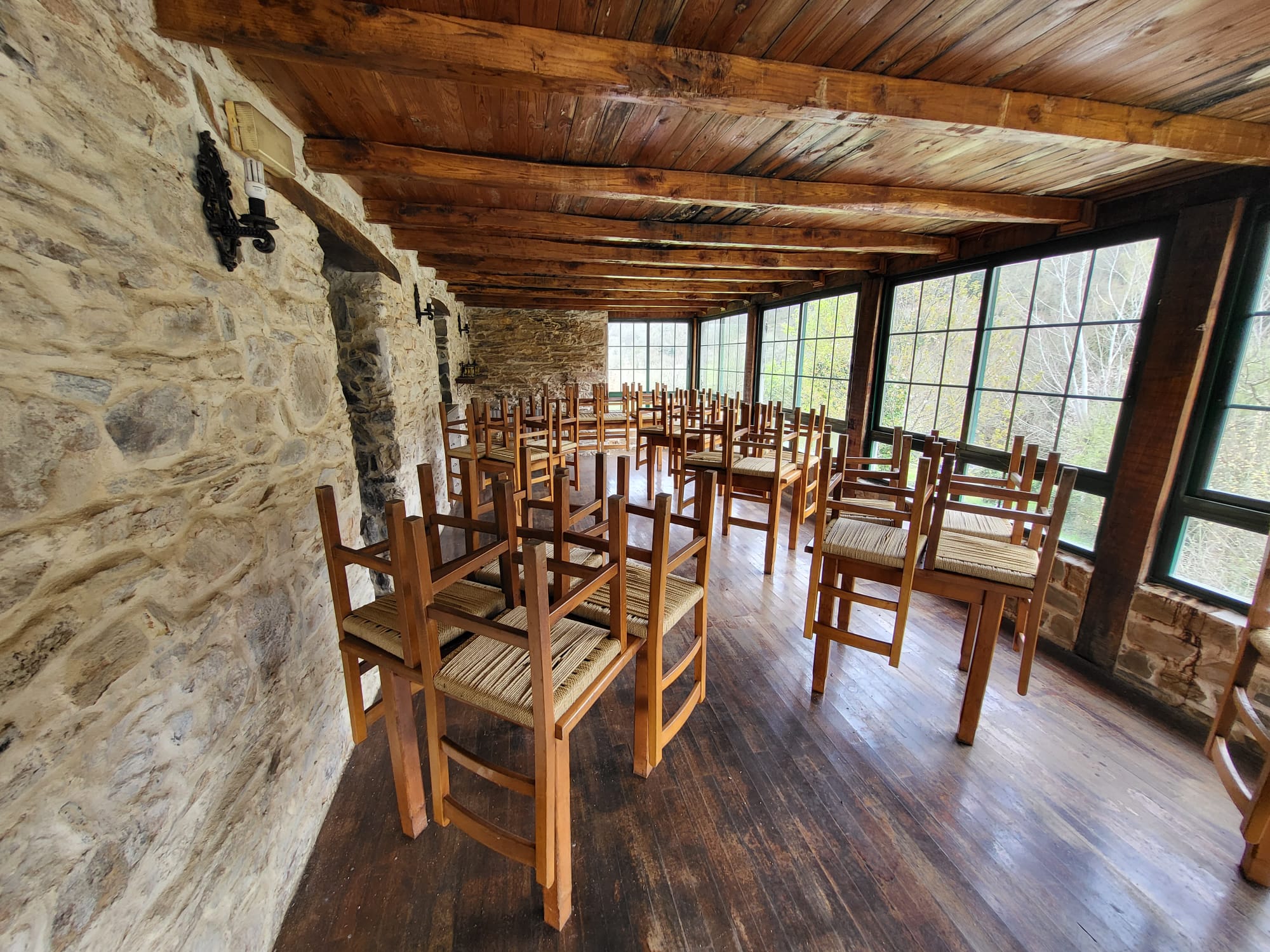 El edificio principal alberga la cafetería y el restaurante en la planta alta, con una rampa de acceso para personas con discapacidad para cumplir con las regulaciones. Además, cuenta con una zona con piscina y una amplia terraza para disfrutar del verano.