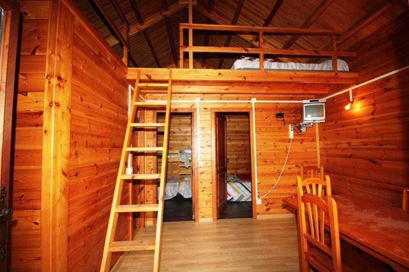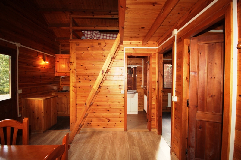 Los bungalows, construidos en madera maciza, brindan una estancia interior agradable y confortable. El área de acampada de aproximadamente 5,000 m² se divide en parcelas separadas por árboles, lo que proporciona sombra a los campistas. Cada parcela dispone de electricidad y puntos de luz. El campamento también ofrece una sección con fregaderos y baños para los campistas en la planta baja del edificio principal.
