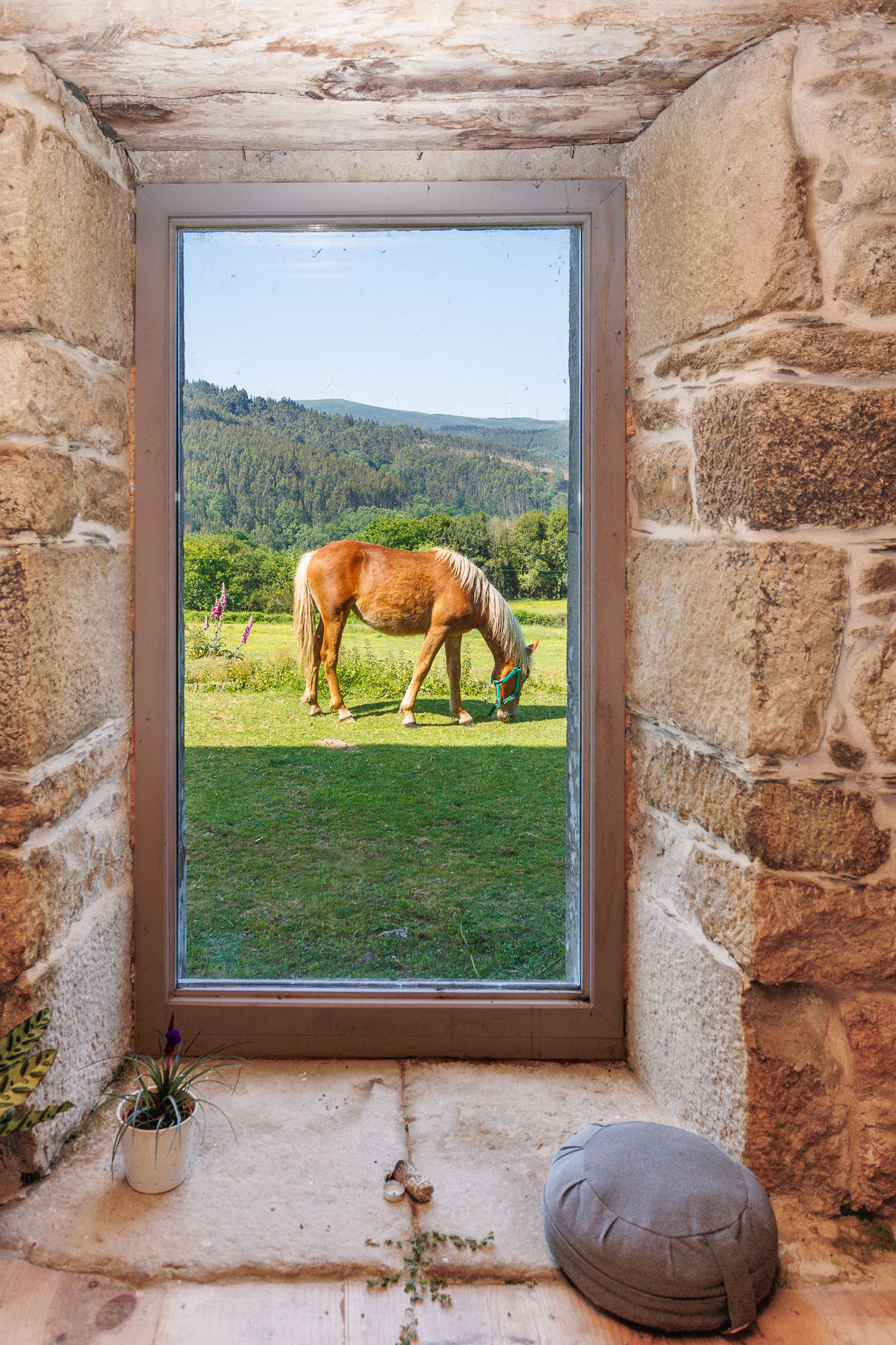 Este caserío es un lugar muy especial. Se encuentra en un maravilloso y tranquilo valle, a solo 15 kilómetros de Vivero en la costa de Lugo. La magnífica finca tiene una extensión de 5 ha, con praderas y árboles en torno a la casa y, en la parte posterior, cruzando la carretera de montaña, un hermoso bosque. Los caballos pastan en los prados, entre acebos y robles. El terreno está atravesado por un pequeño arroyo que procede del manantial que nace allí mismo. Tiene hasta un lavadero antiguo junto al manantial.