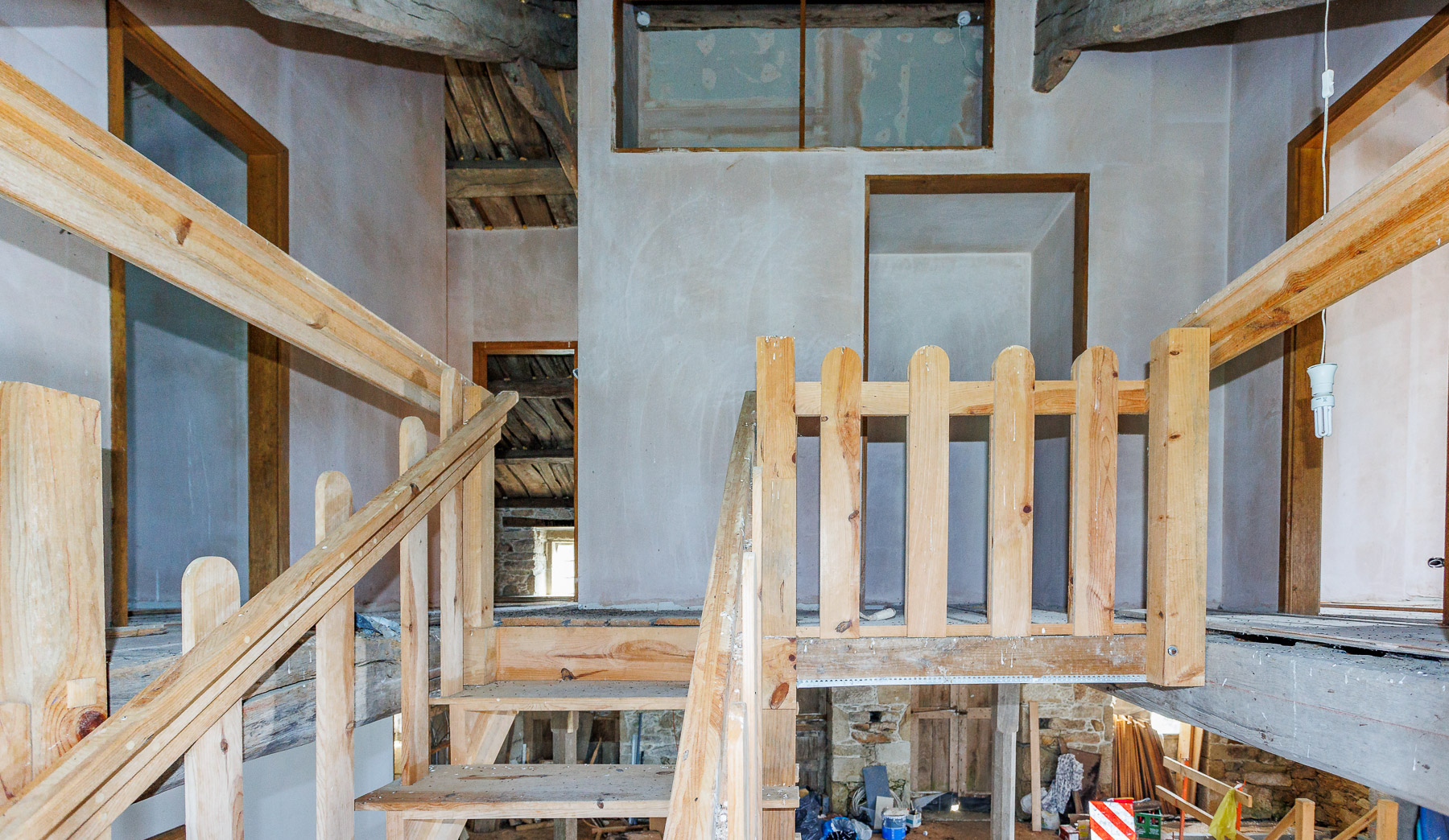Este edificio se está reformando, ya dispone de fosa séptica y electricidad. En la planta baja: un gimnasio y sala de juegos. En la primera planta se hará un enorme salón conectado con cocina y comedor. También, está proyectado construir un porche. Este espacio conectará con un pequeño despacho. En la planta superior existen divisiones para 4 dormitorios con 4 baños. Todo por construir.