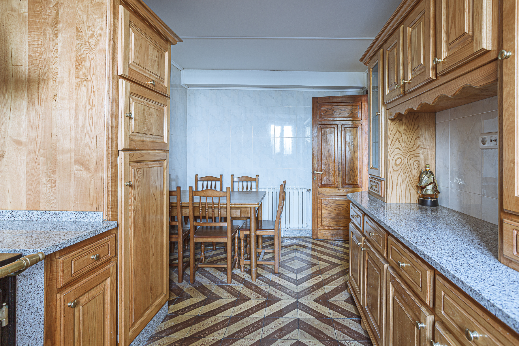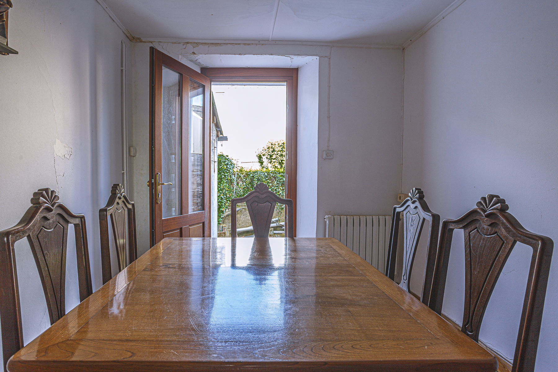 En la primera planta encontramos una cocina que combina el tradicional fogón de leña con la moderna placa vitrocerámica. Junto a la cocina, tenemos un bonito comedor clásico, desde él se accede a un pequeño jardín, donde se encuentra un recinto cerrado con la caldera de calefacción y el depósito de gasóleo.