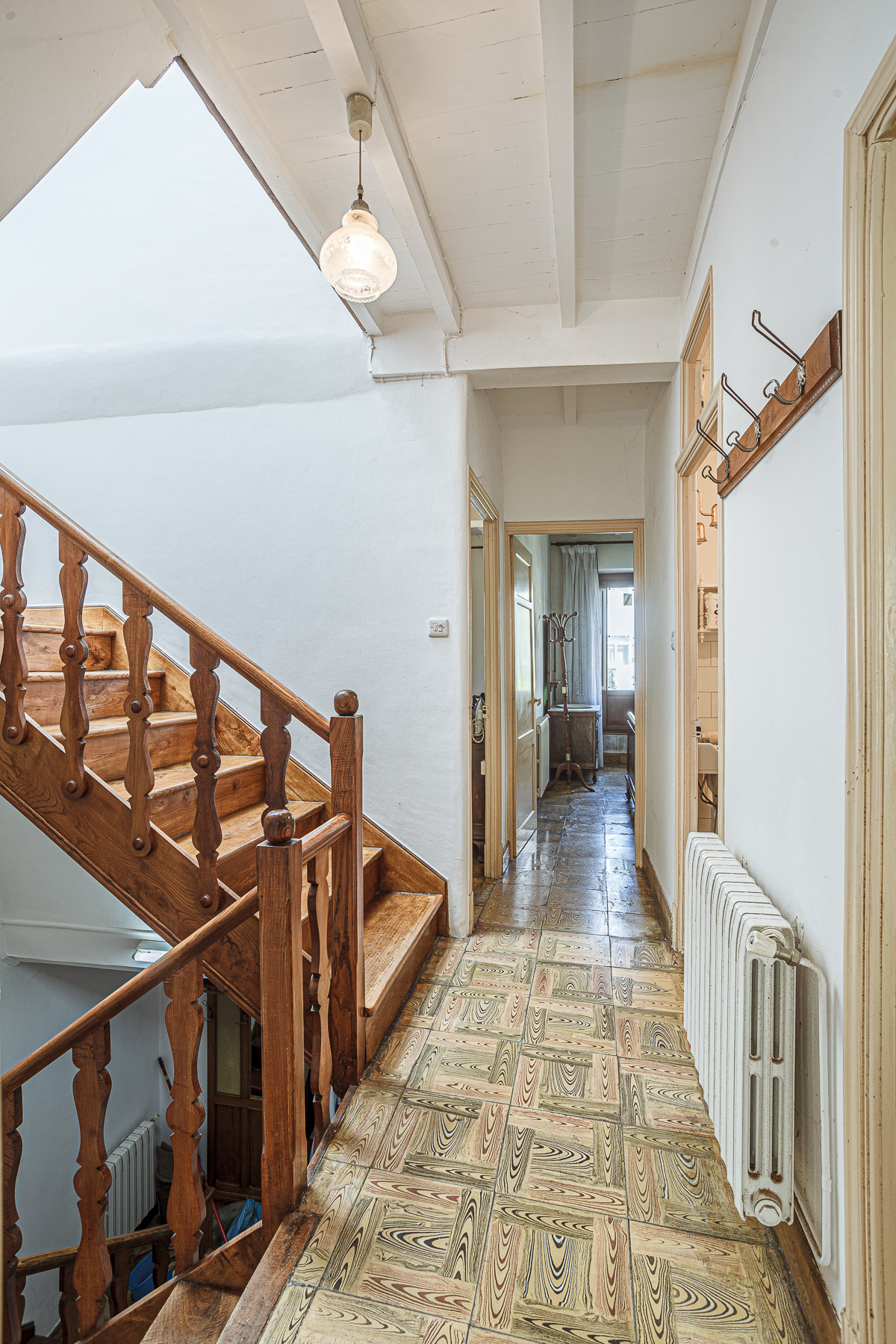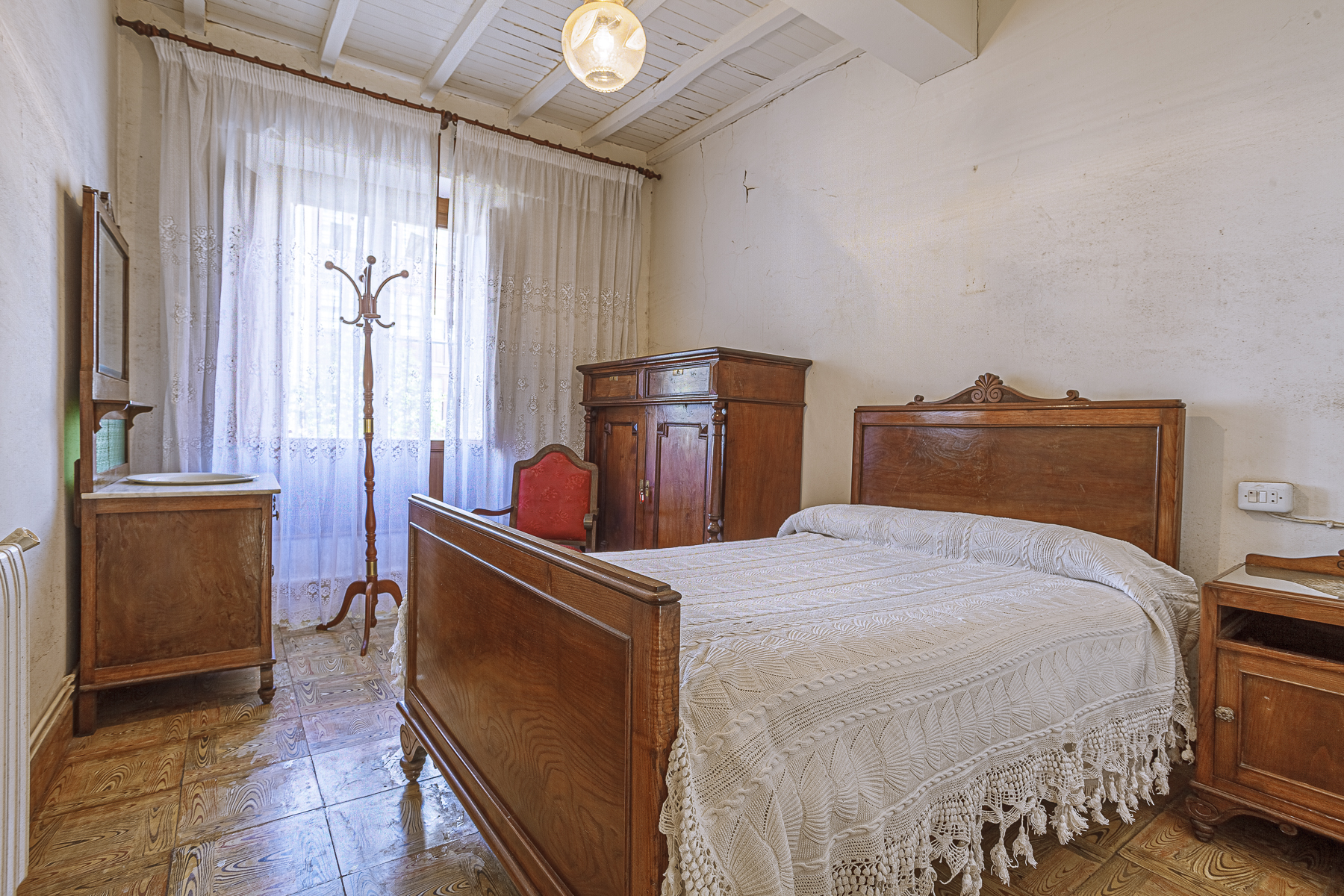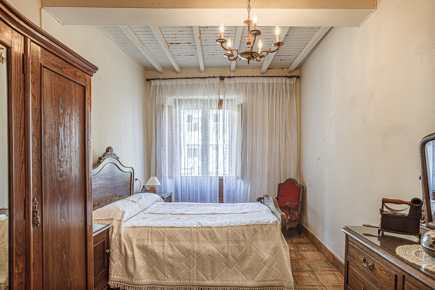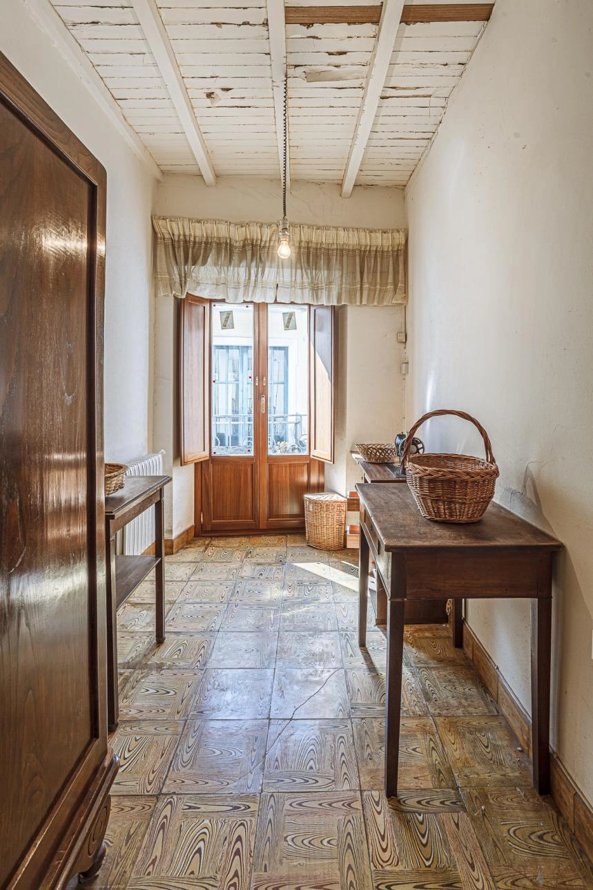 En la segunda planta, la vivienda dispone de tres dormitorios de matrimonio con sus correspondientes armarios clásicos en madera maciza, un cuarto de baño completo y una sala utilizada como cuarto de costura, con las máquinas antiguas típicas de este oficio.