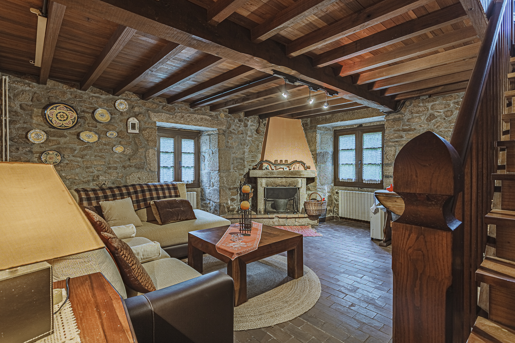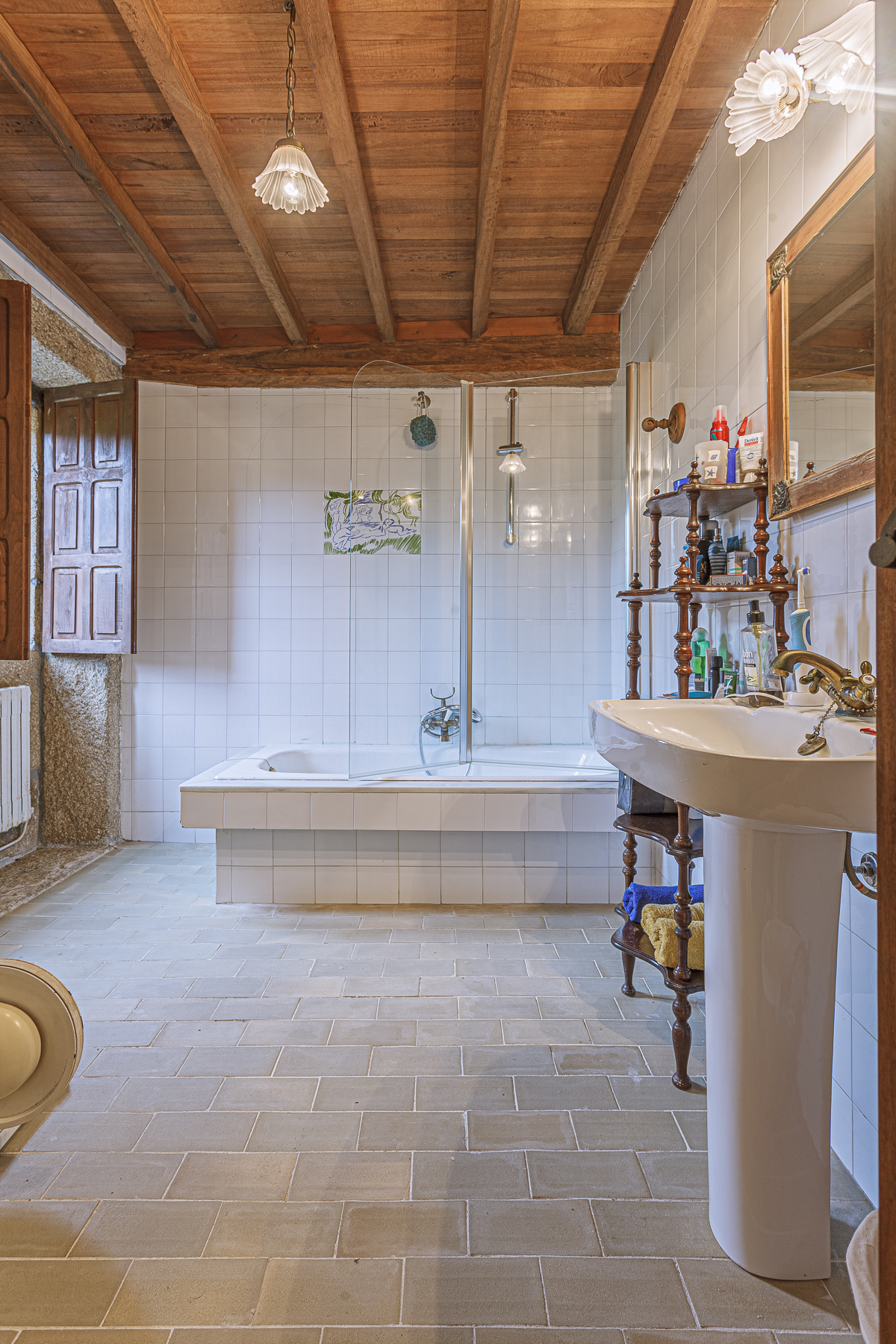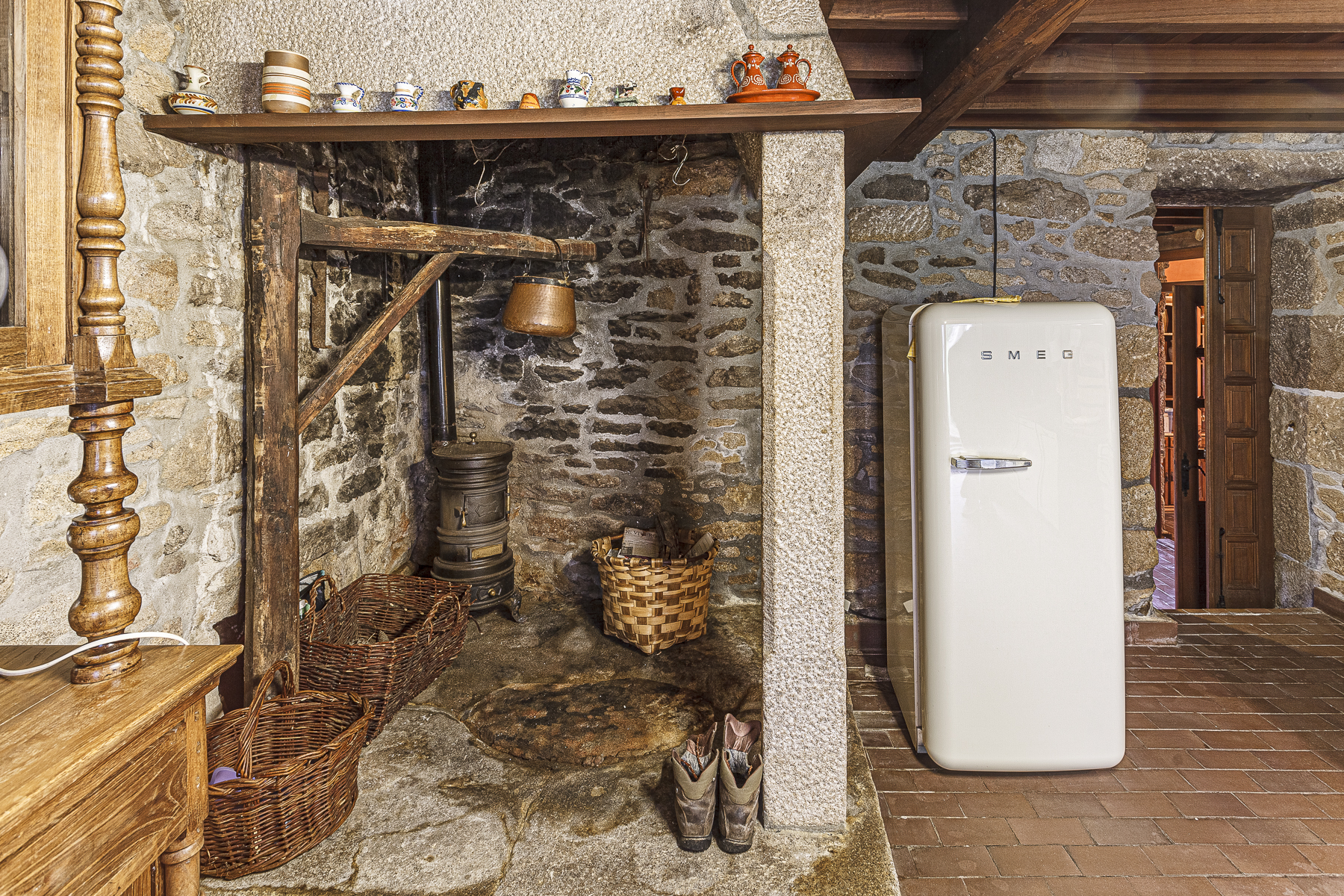 La distribución de la casa es la siguiente. Planta baja. Hall de acceso. Cocina, con lareira y fregadero tradicional de piedra. Además de todos los elementos actuales necesarios para cumplir su función. Bodega y cuarto de caldera para calefacción (depósito de gasoil de 1.000 litros). Salón con chimenea. Y comedor. Cuarto de lavadora y tendedero. Un cuarto de baño completo.