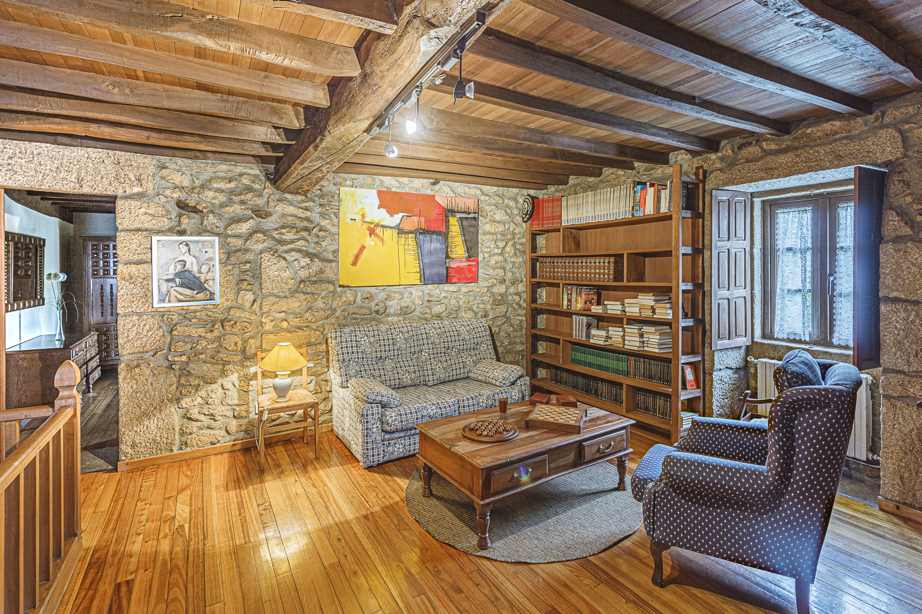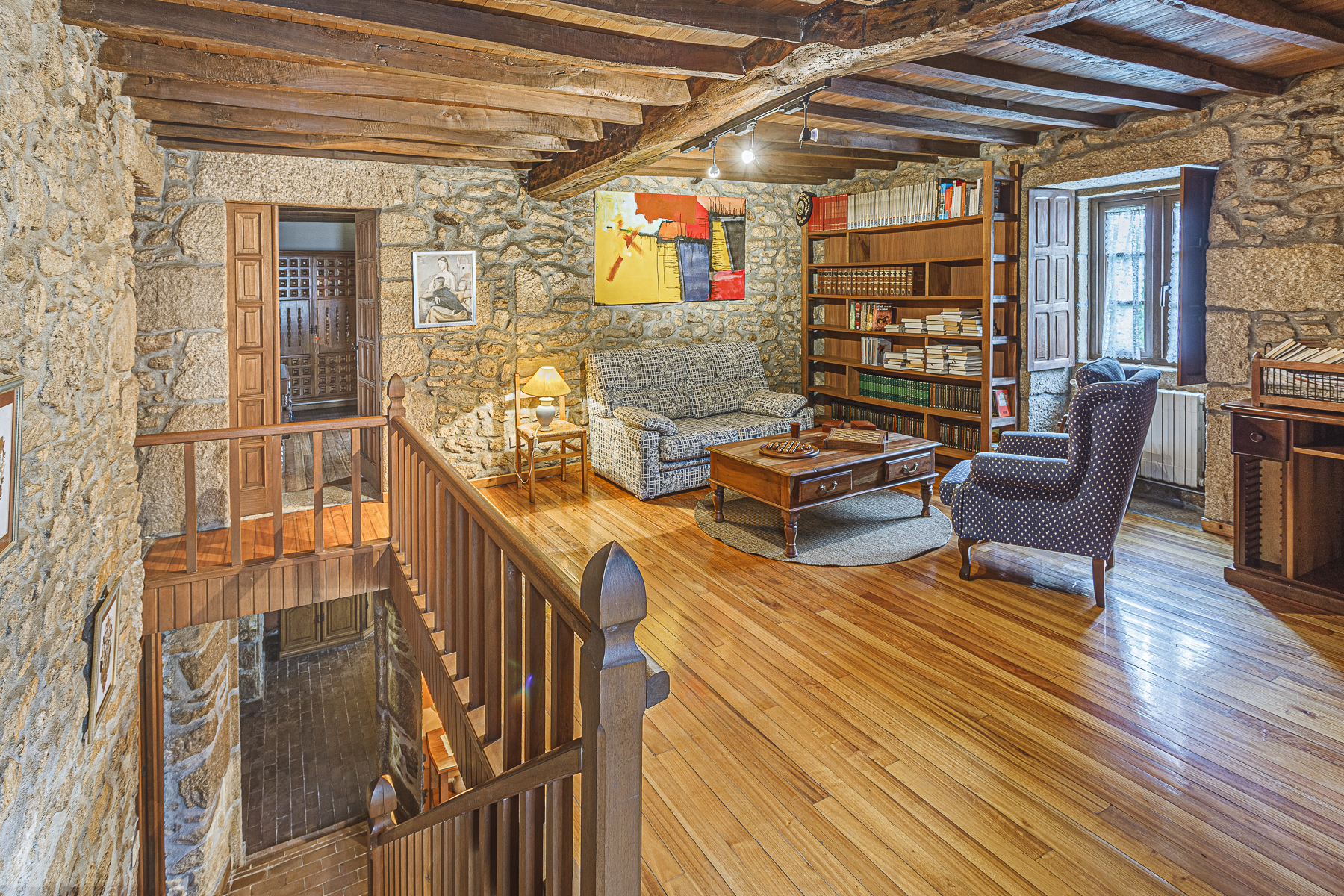Planta superior, a la que se accede por una escalera de madera desde el salón. Una sala de estar con acceso a un balcón de aproximadamente 1,5 x 2,00 metros. Dormitorio principal con baño. Sala de estar, utilizada como despacho o biblioteca. Dos dormitorios más. Y otro cuarto de baño. Desde el salón se accede, mediante escaleras, a la buhardilla, totalmente diáfana.
