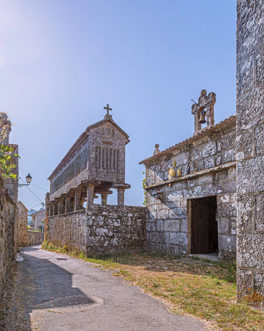Y una rareza: por tamaño y construcción, uno de los pocos ejemplares de hórreo gallego de este tipo que existen. Apoyado en 12 pilares de piedra, se levanta sobre un almacén, alineado con el pazo y la maravillosa capilla de piedra.