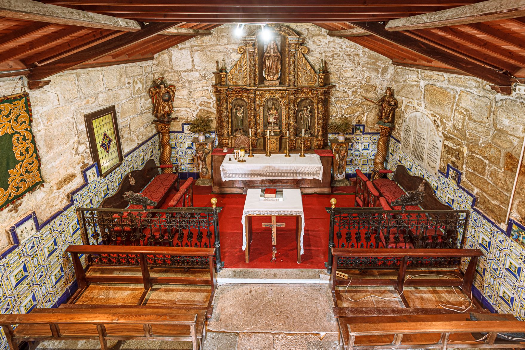 La capilla convierte una casa señorial en pazo. Esta del Pazo de La Parda, en Pontevedra, Tiene carácter semipúblico. Hay culto todos los domingos, hay bodas, pero la propiedad decide. Y los accesos son independientes. El público desde la calle, los propietarios desde el interior del pazo. Tiene capacidad para unas 40 personas, 85 m2 aproximadamente.