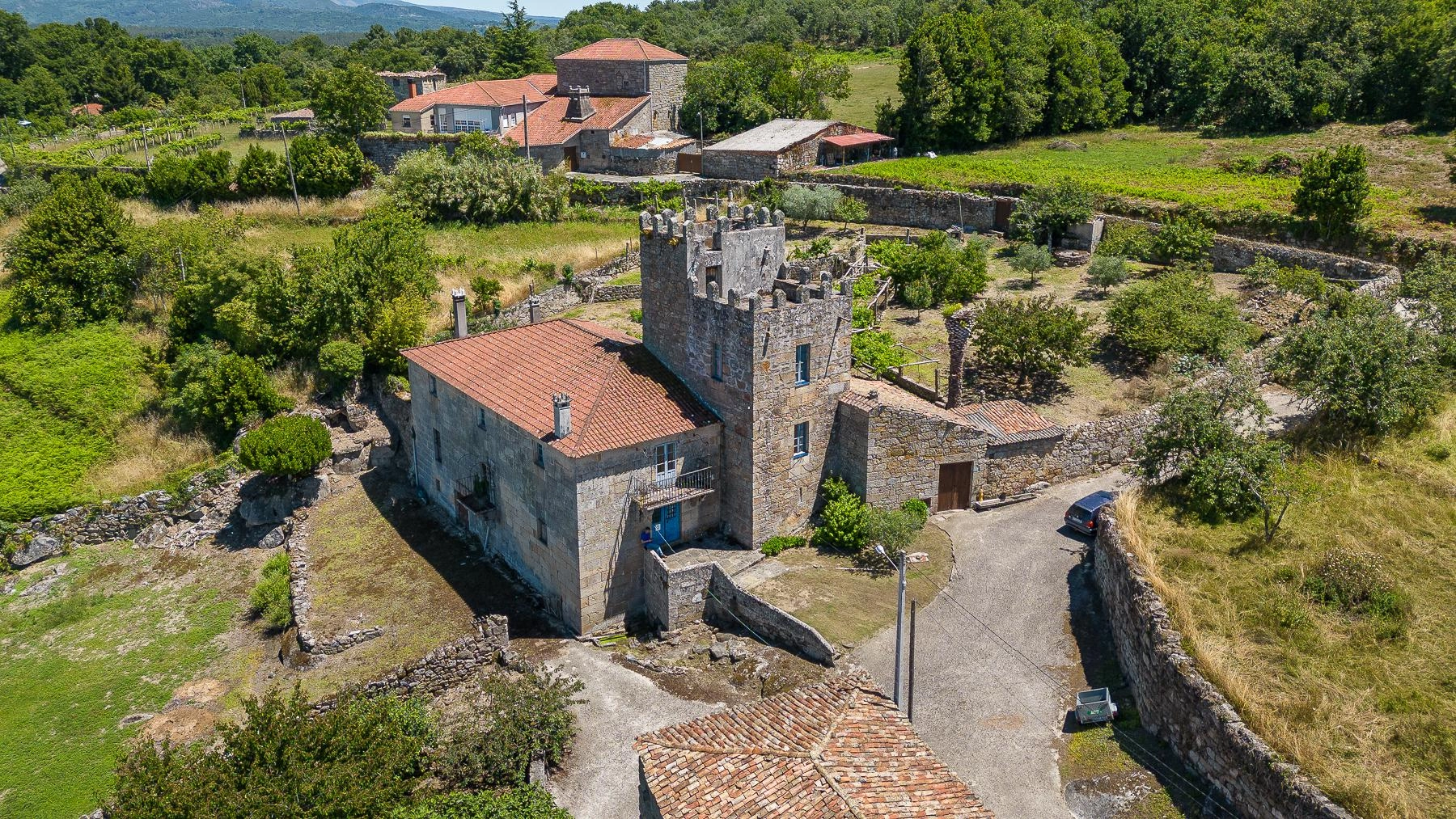 La torre conserva las almenas desde las que los arqueros disparaban con relativa seguridad y las vistas desde la torre son increíbles en todas direcciones. Su construcción es rectangular y tiene dos pisos de altura. Bajo el pazo hay una maravillosa bodega tiene pozo propio al lado de la zona de lavadero. Las fincas que le pertenece suman 5827m2 y tiene un alpendre de 185m2 que podría convertirse en apartamentos.