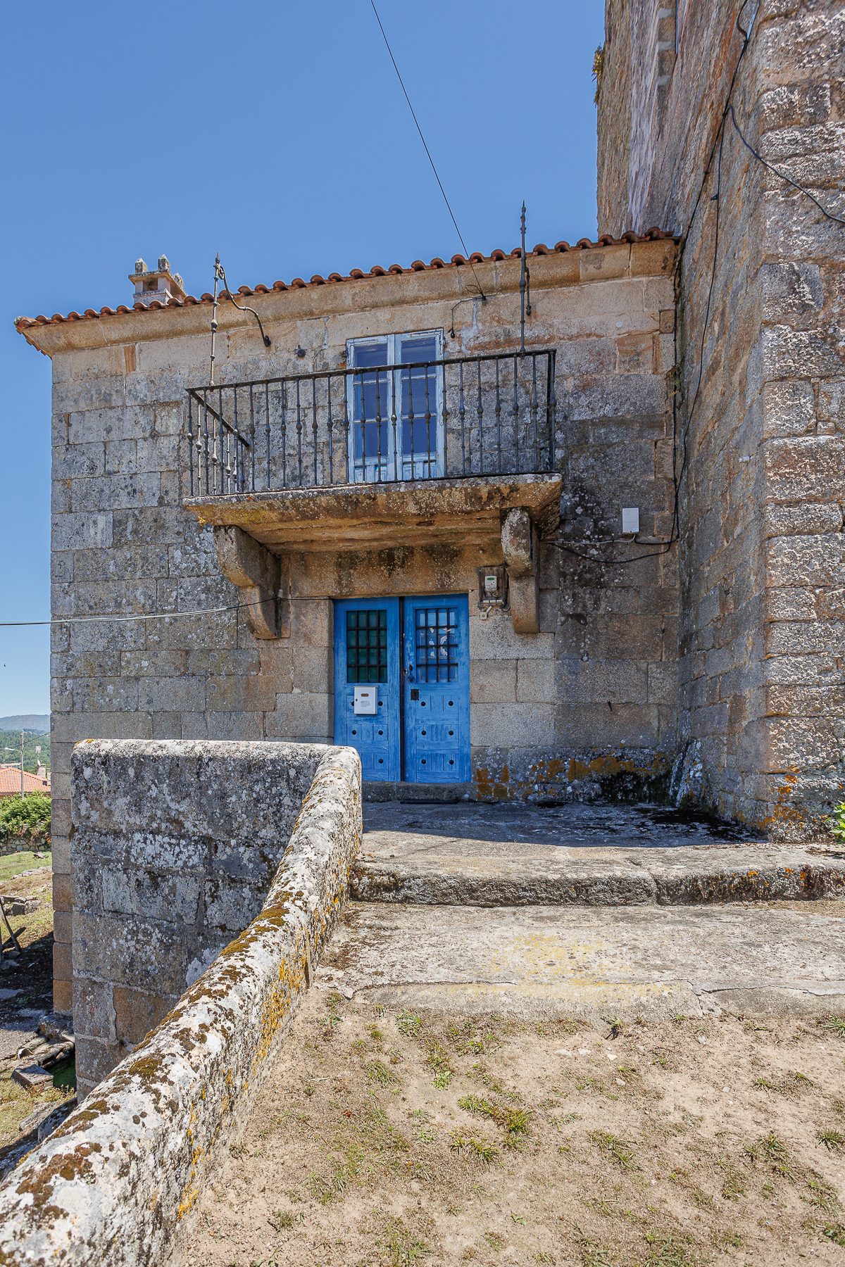 El Pazo tiene dos balcones de piedra, uno a cada lado de granito con balaustradas de hierro.