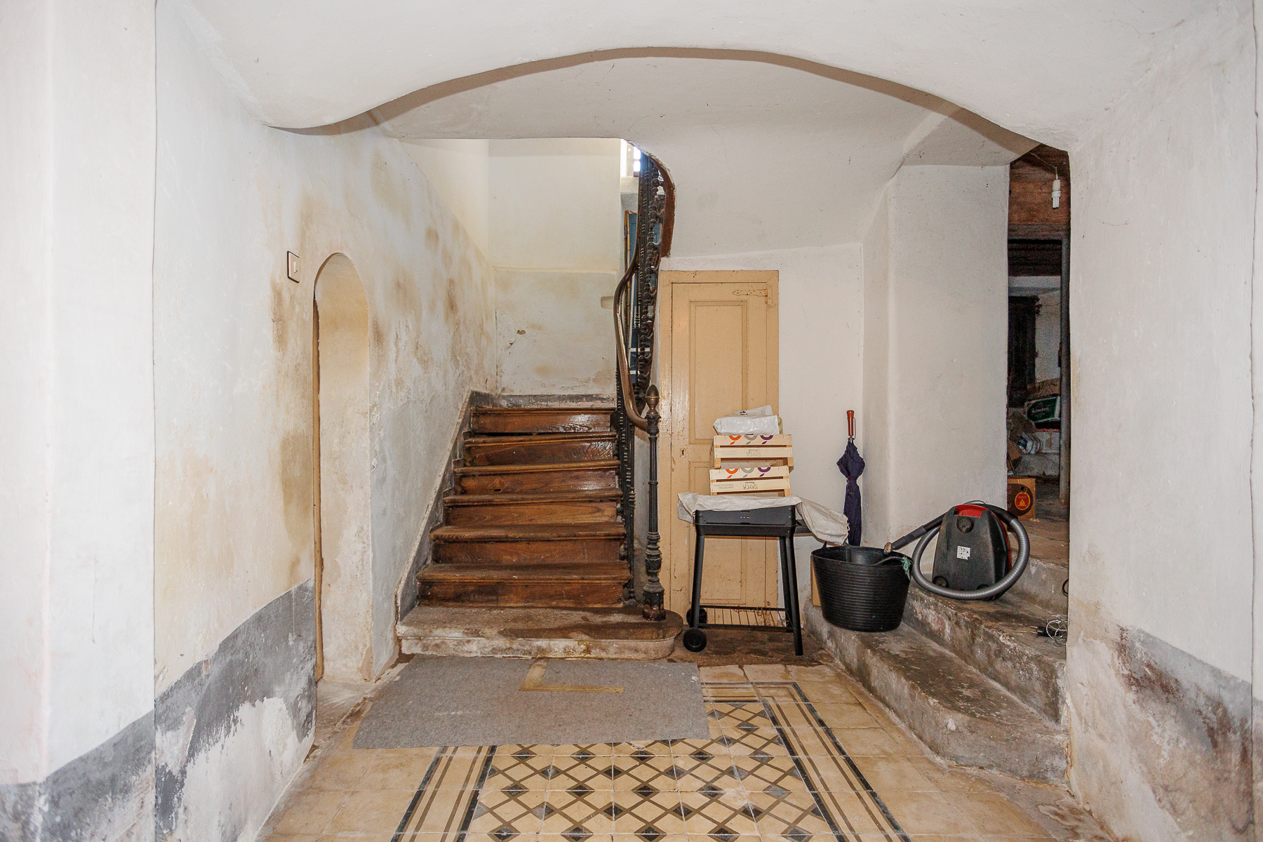 En la planta baja está la puerta principal tras la cual se encuentra la magnífica escalera de granito que da acceso a la casa.