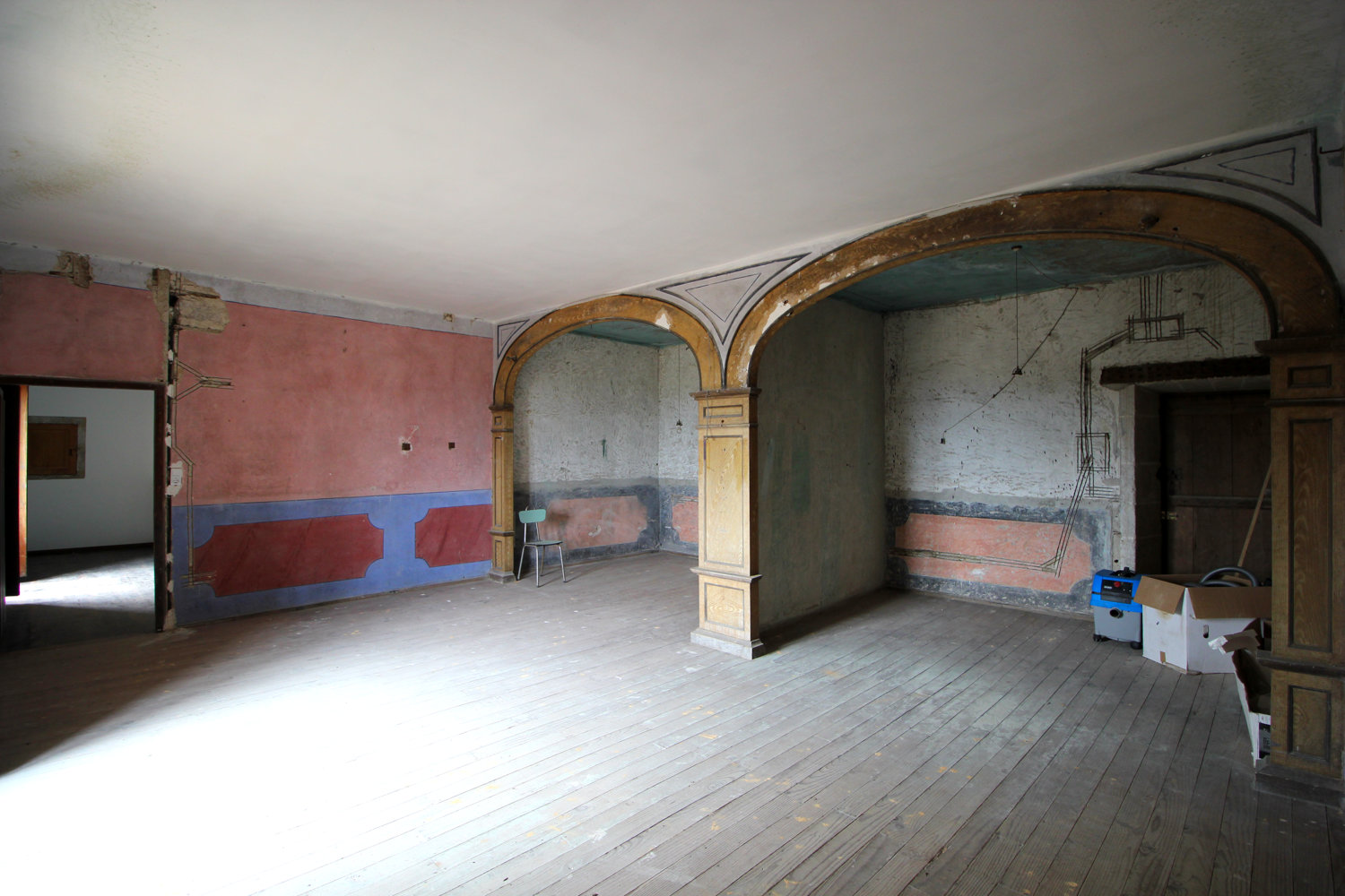La edificación consiste de 900m2 dividida en 3 plantas. Tiene 10 habitaciones y 2 baños. Actualmente se encuentra en proceso de restauración.