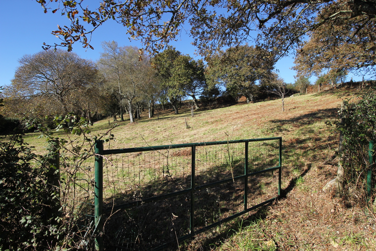 Más de la mitad de la parcela está ocupada por robles que hacen una excelente barrera contra el viento ya que están al norte y la casa y el terreno están orientados al sur.