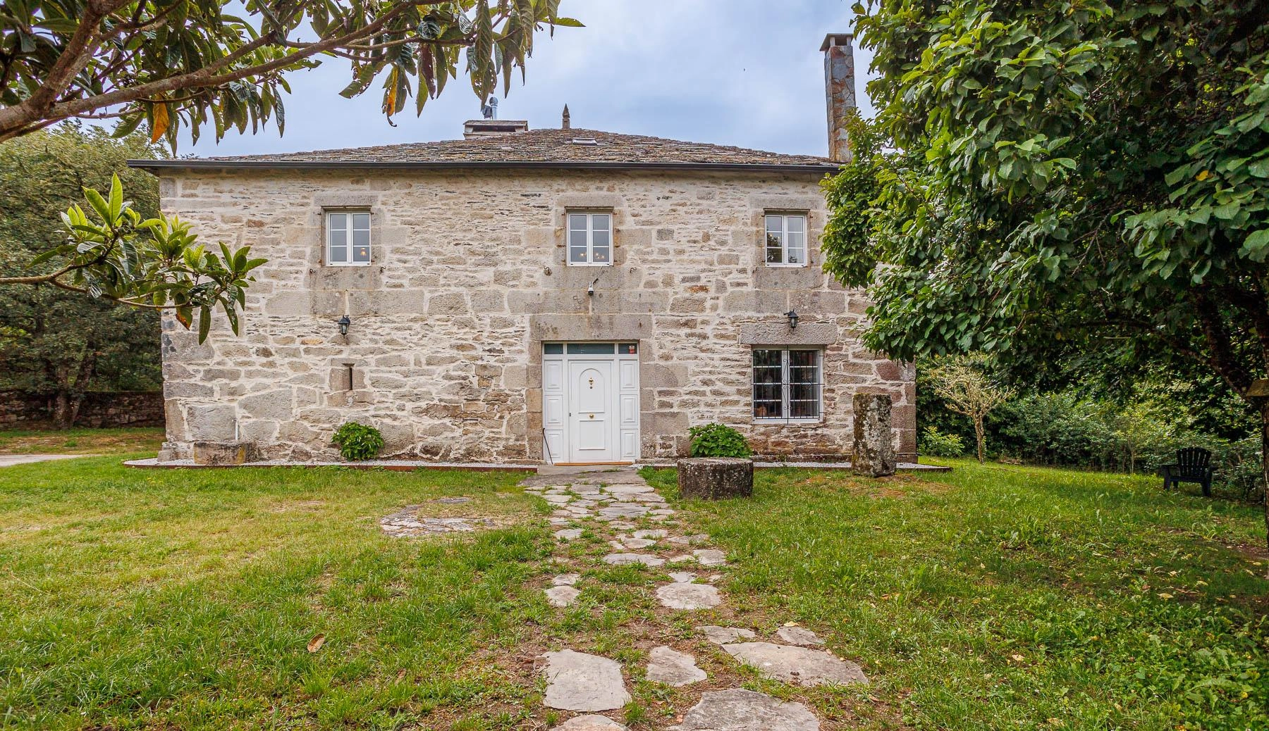 Esta casa esta en una zona de bosque de robles lindando con el rio Miño a 7km del centro de Lugo.