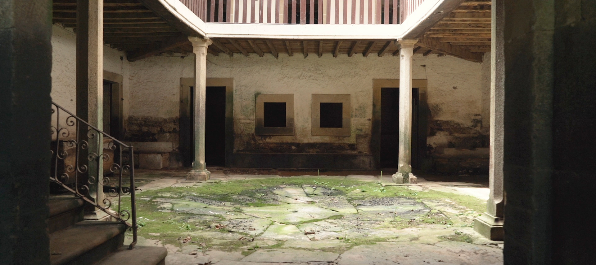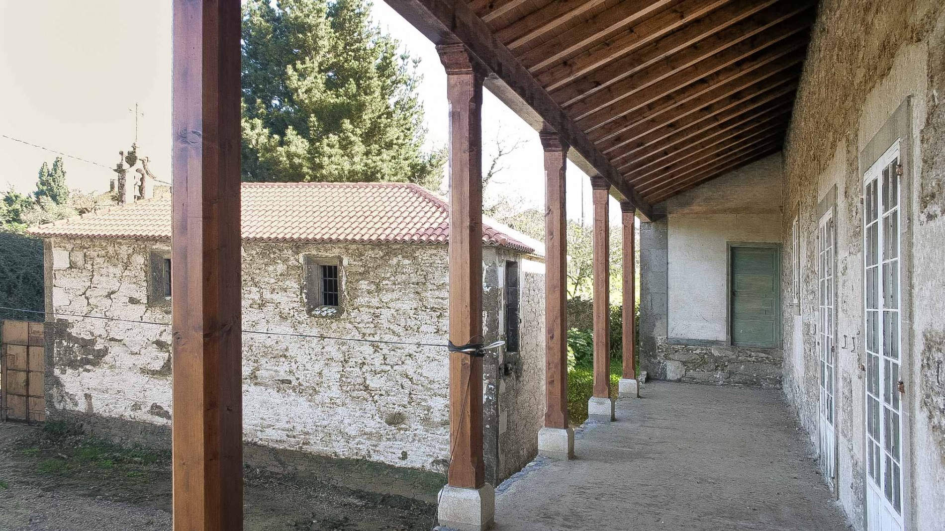 La planta principal esta empedrada con típicos chantos Gallegos (grandes piezas de pizarra) y la balconada de la planta superior esta apoyada en grandes columnas de granito talladas según el estilo que era común en el siglo XII.