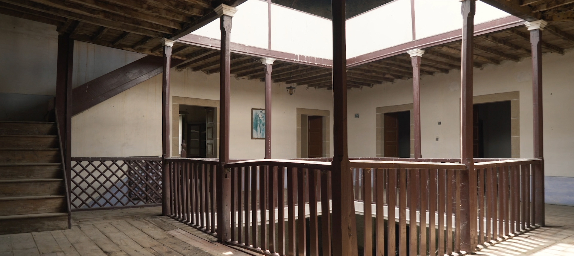 En el patio con su claraboya inmensa acristalada son evidentes estas influencias Andaluces con todas las estancias alrededor del patio.