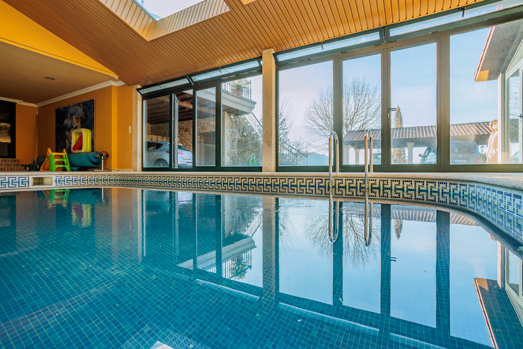 Goza de una piscina interior con un gran tamaño con una bañera de hidromasaje de tamaño familiar y sauna.