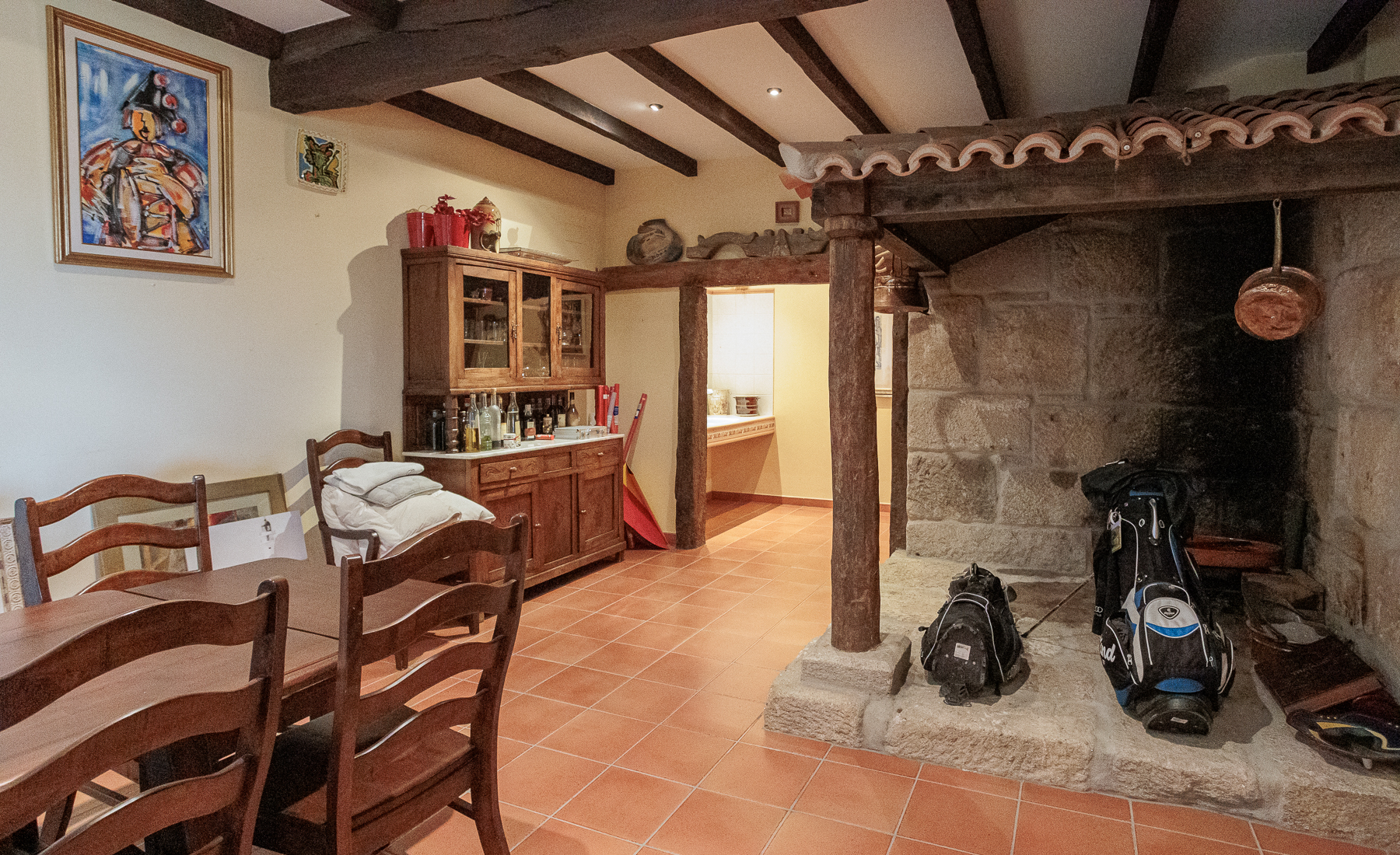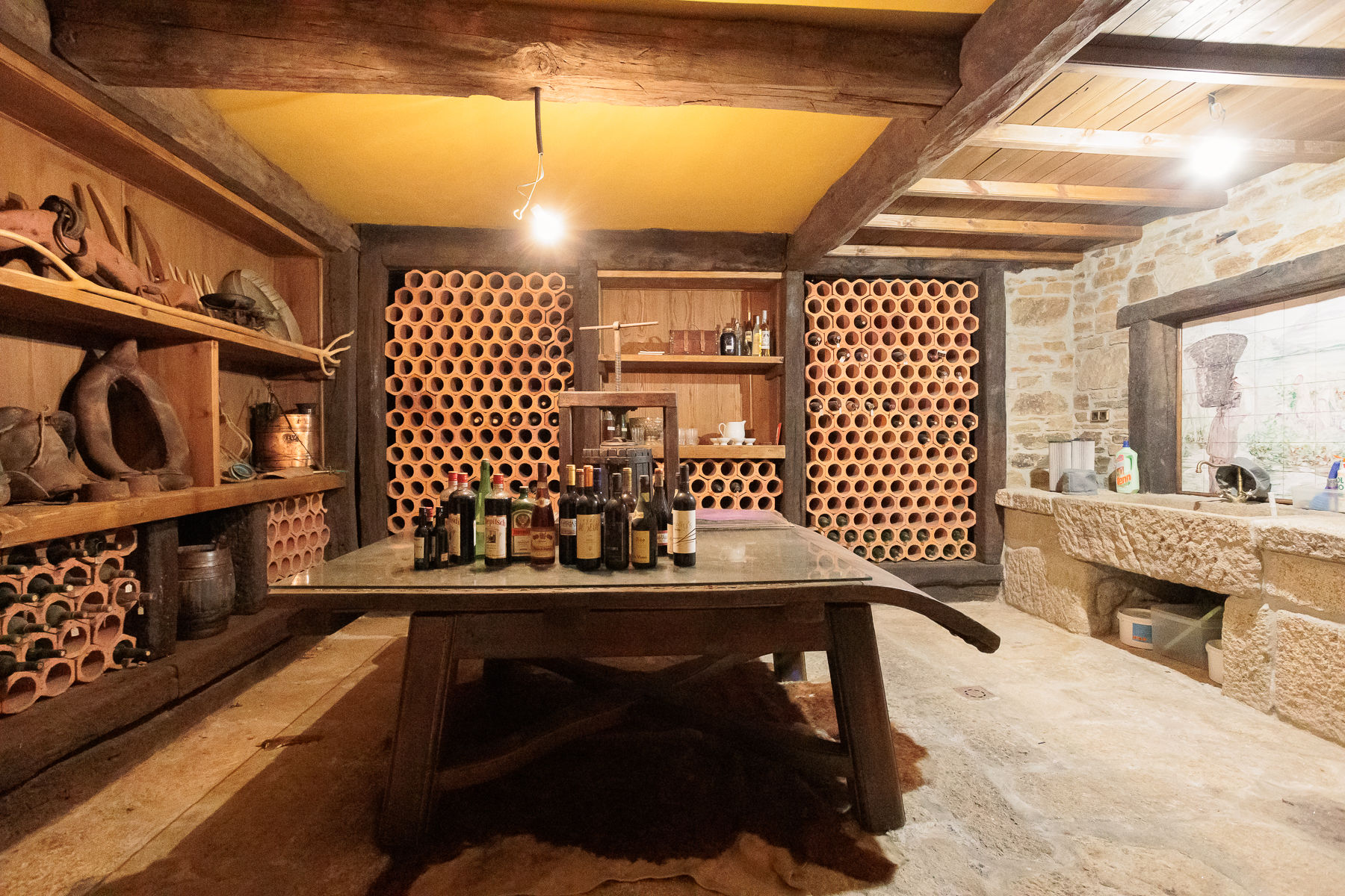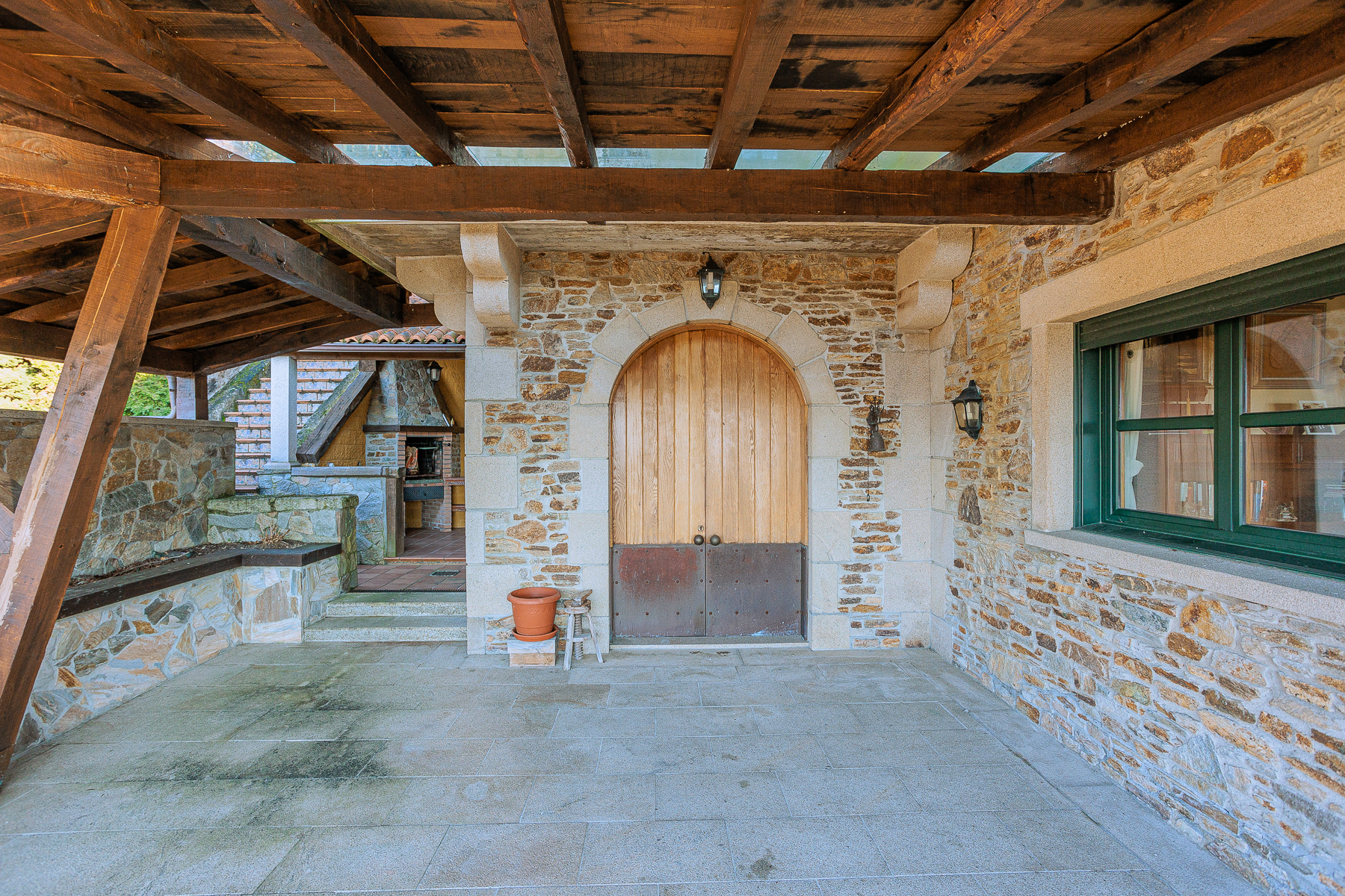 Toda la estructura está hecha de piedra local y con vigas de madera dando a gran parte de la casa un aspecto rústico tradicional típico.