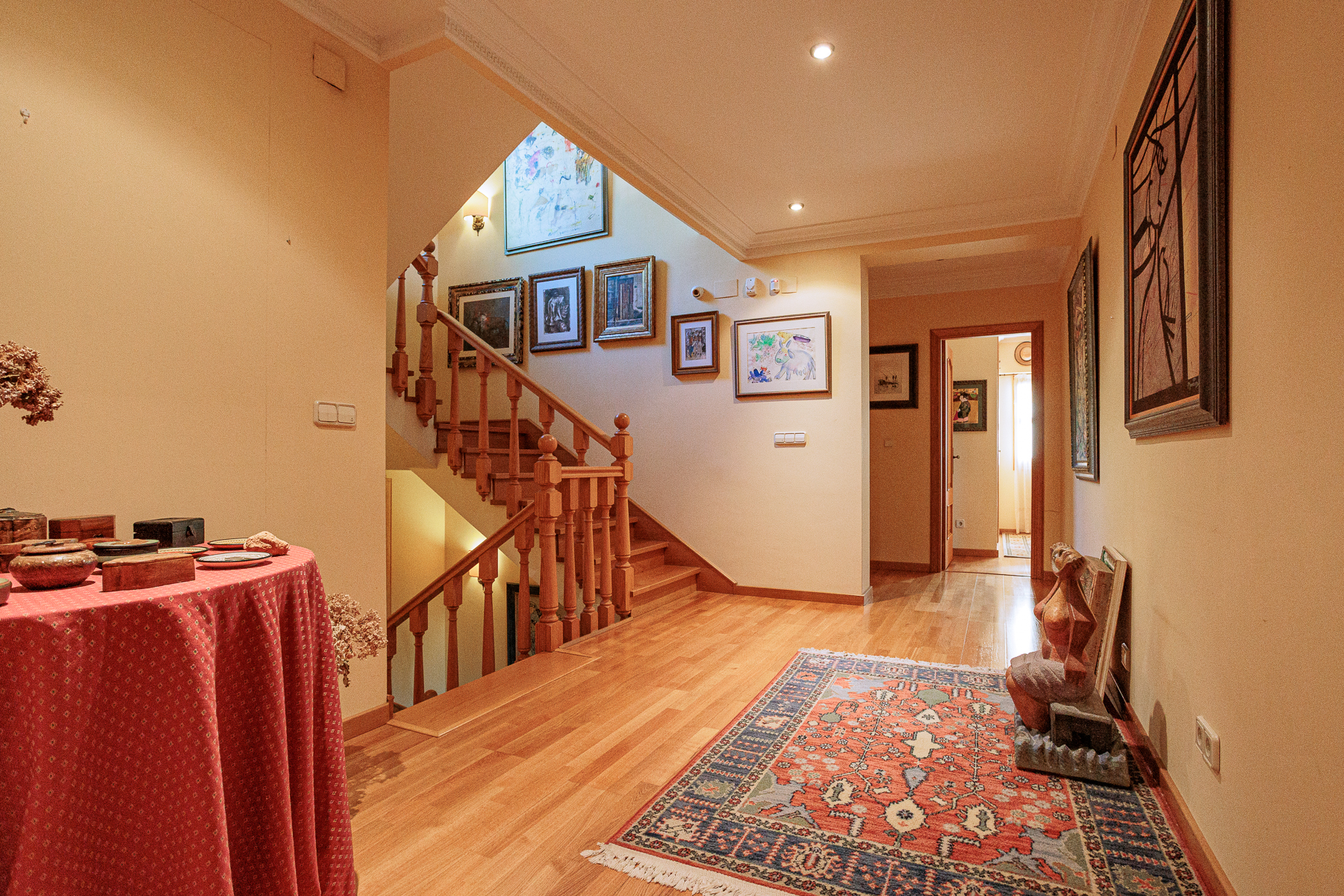 La casa se ha construido en cinco niveles. Tiene calefacción por suelo radiante y aire acondicionado en toda la casa.