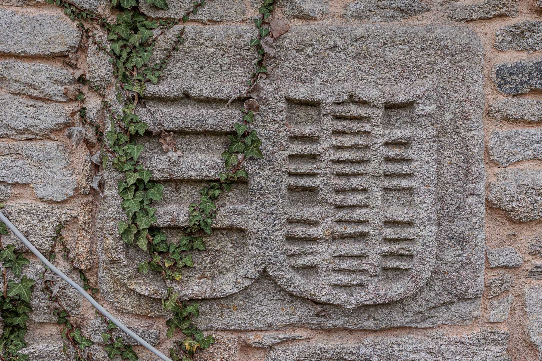 Tiene una escalera con barandilla de granito hasta el primer piso montada sobre arcos de gran belleza. En la parte superior de la escalera hay dos escudos nobiliarios.