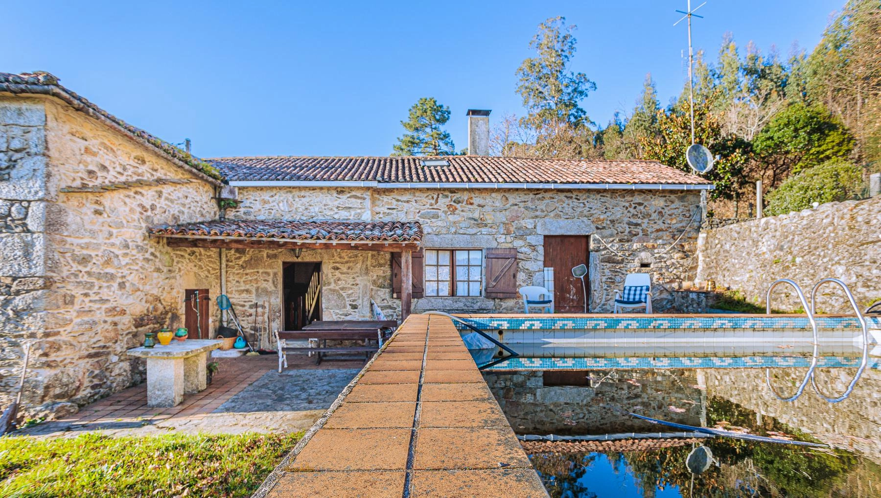 Casa preciosa con finca y piscina a solamente 11 km de Santiago. Se trata de una propiedad muy bien restaurada con 3 habitaciones y posibilidad de hacer una cuarta.