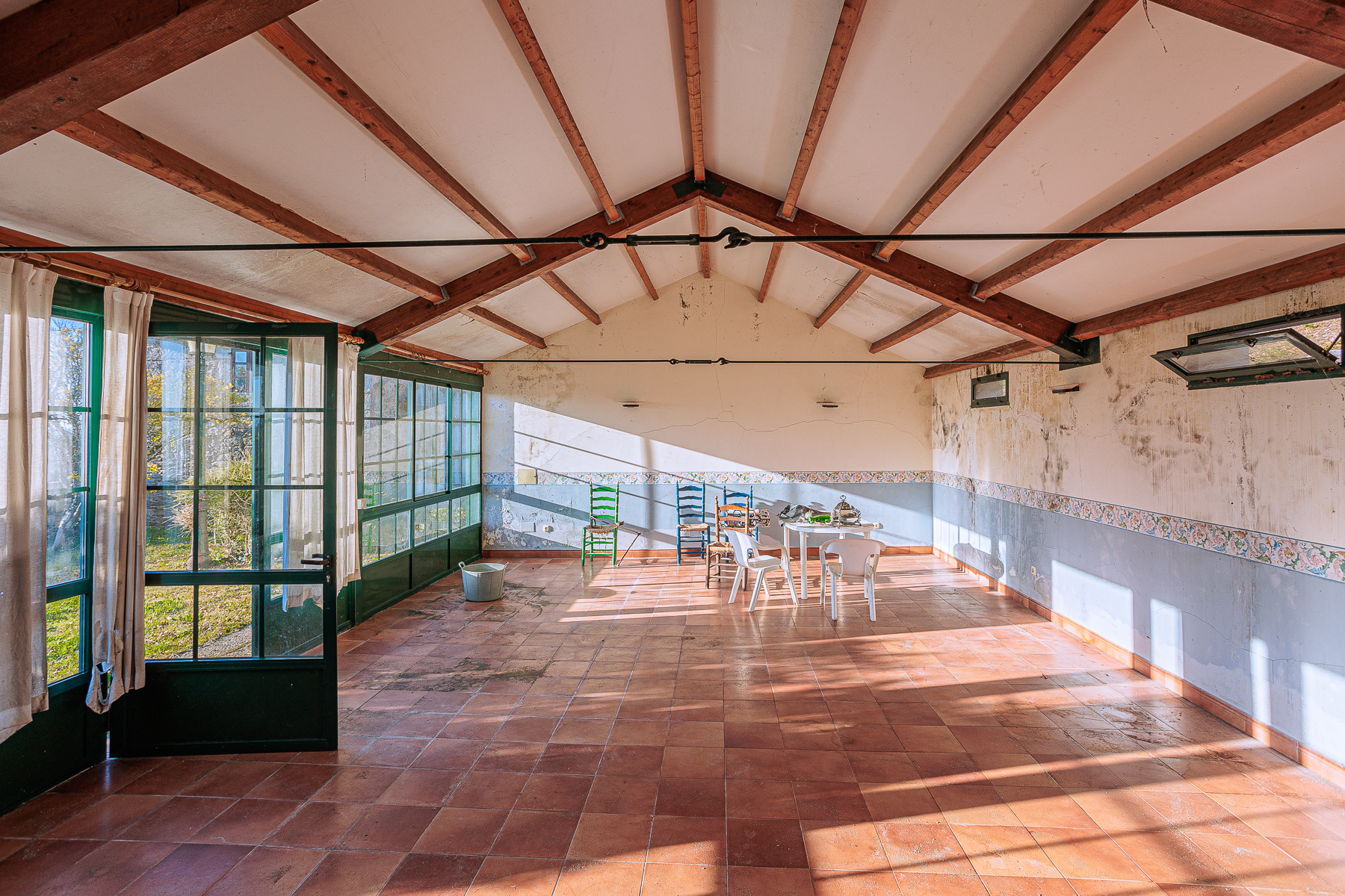 En la planta principal hay un salón con chimenea y una bodega con dos plantas. Desde el salón se accede al porche, zona donde también se encuentra la piscina y un salón anexo acristalado. También en esta planta se encuentra una cocina y un baño.
