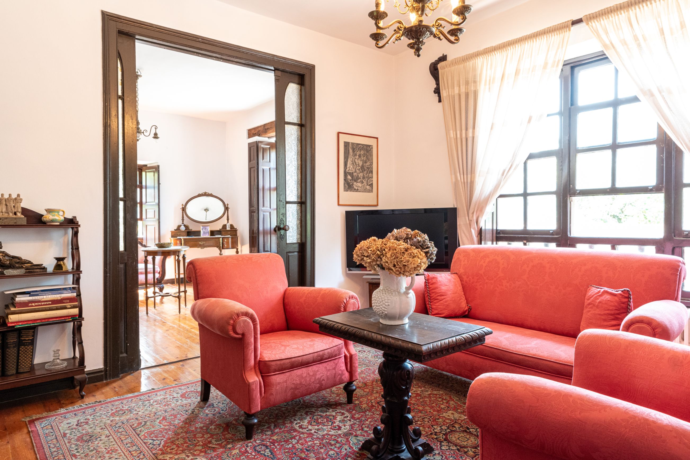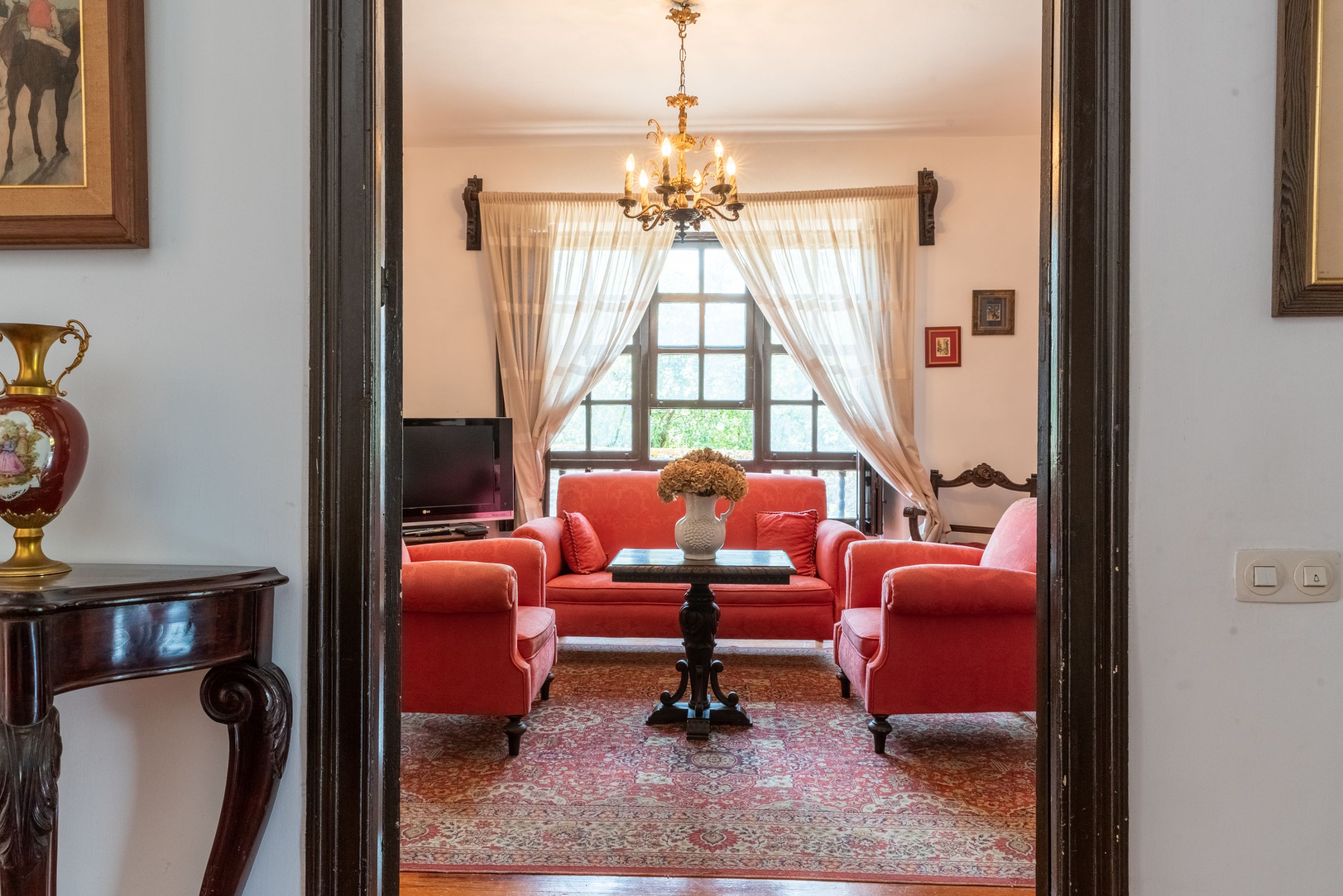 En realidad son dos casas adosadas, la más grande y otra más pequeña donde actualmente viven los caseros que cuidan de la propiedad y del correcto funcionamiento de las