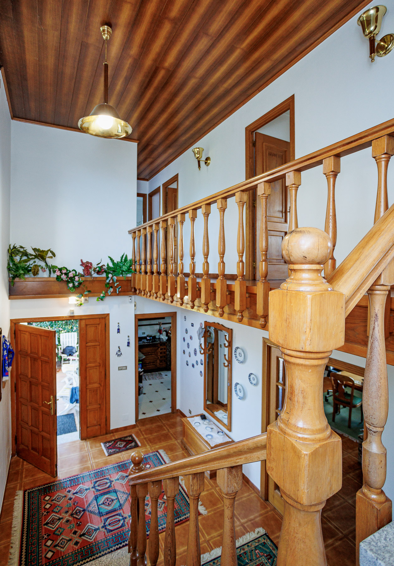 El sótano te sorprenderá con su versatilidad, incluyendo garaje, mesón con barbacoa y horno de leña, bodega de vinos y servicios. La primera planta presenta una cocina espaciosa con cocina de leña y gas, un acogedor salón con chimenea, una habitación de invitados y un baño. En la segunda planta, encontrarás dos baños y 4 habitaciones. El ático, con tres galerías, es un espacio flexible bajo tejado de teja y techo de cemento.