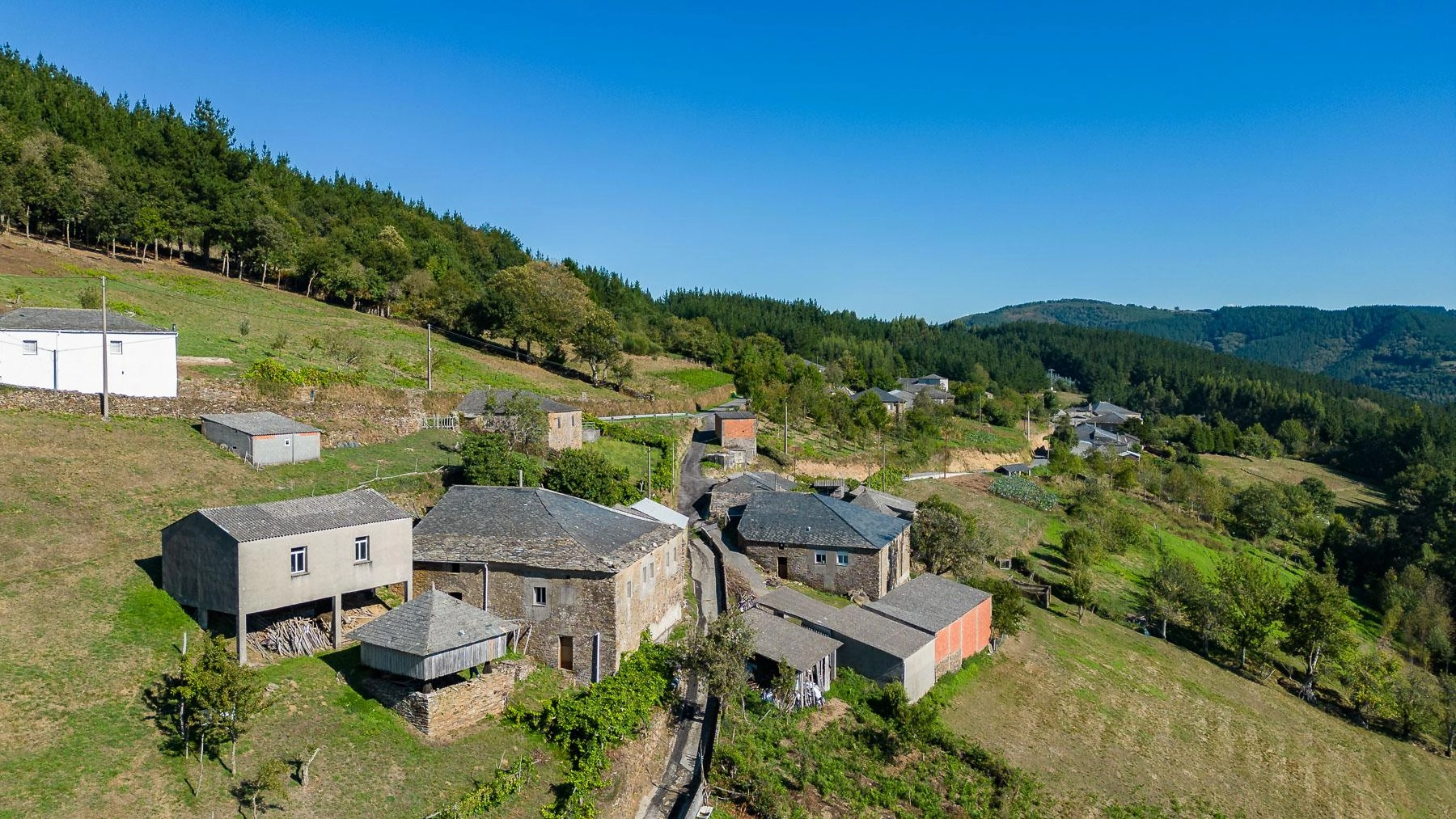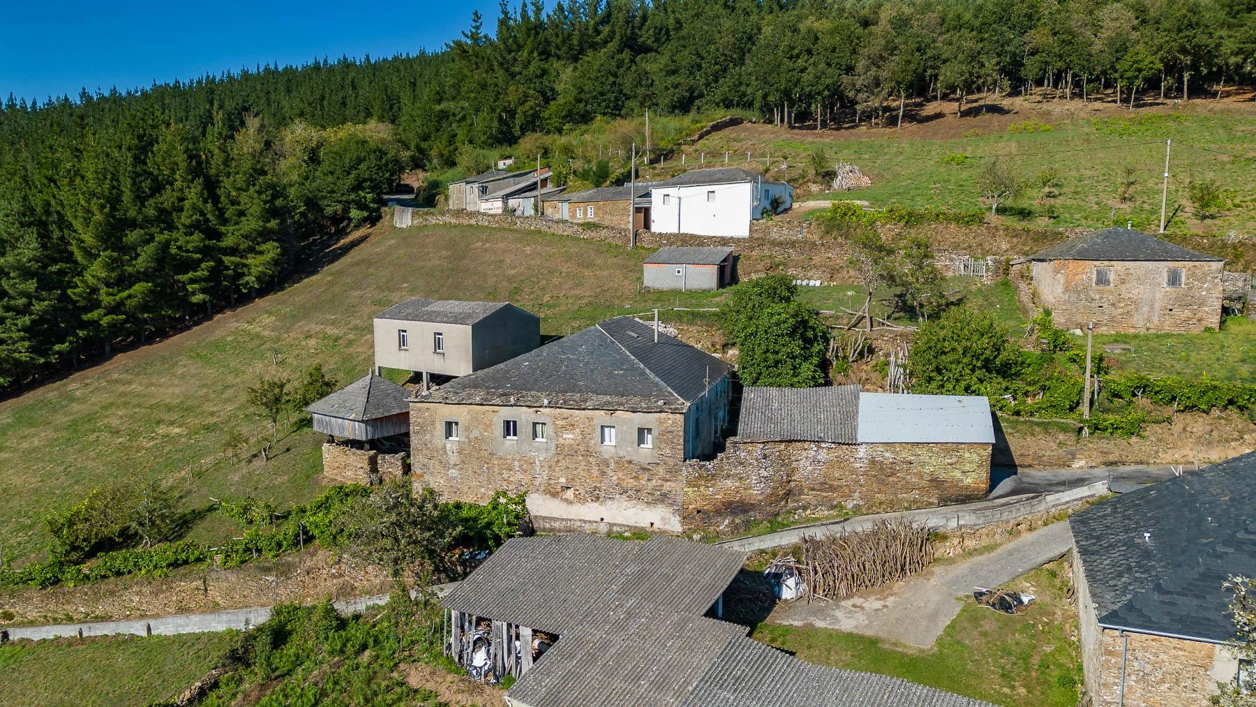 Al mismo tiempo la finca cuenta con dos grandes campos: Horta de arriba y Horta de abaixo con una superficie total de 20.507m2, parte de los cuales está en producción forestal.