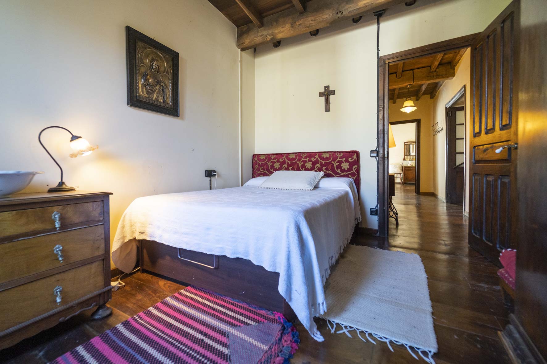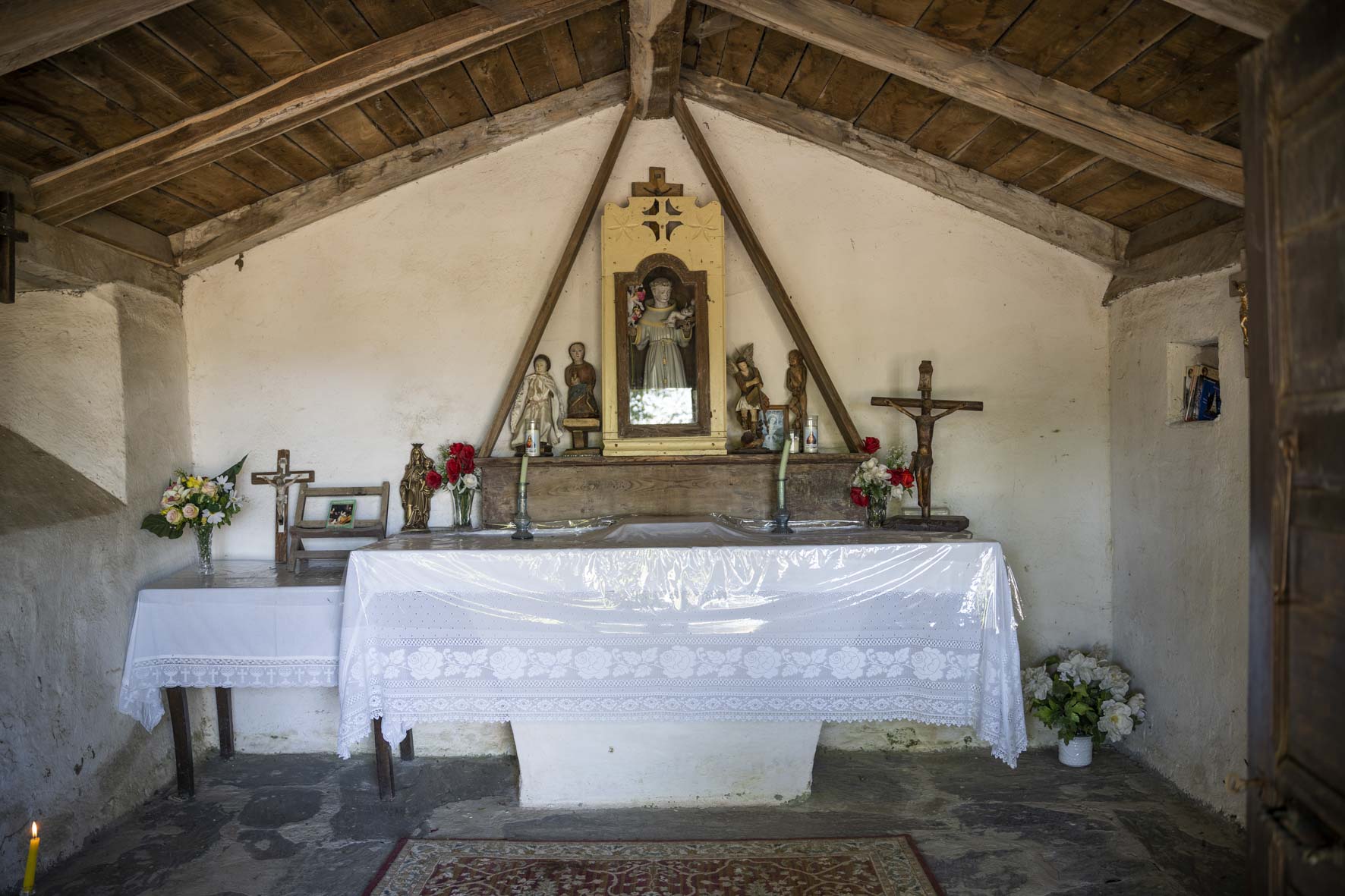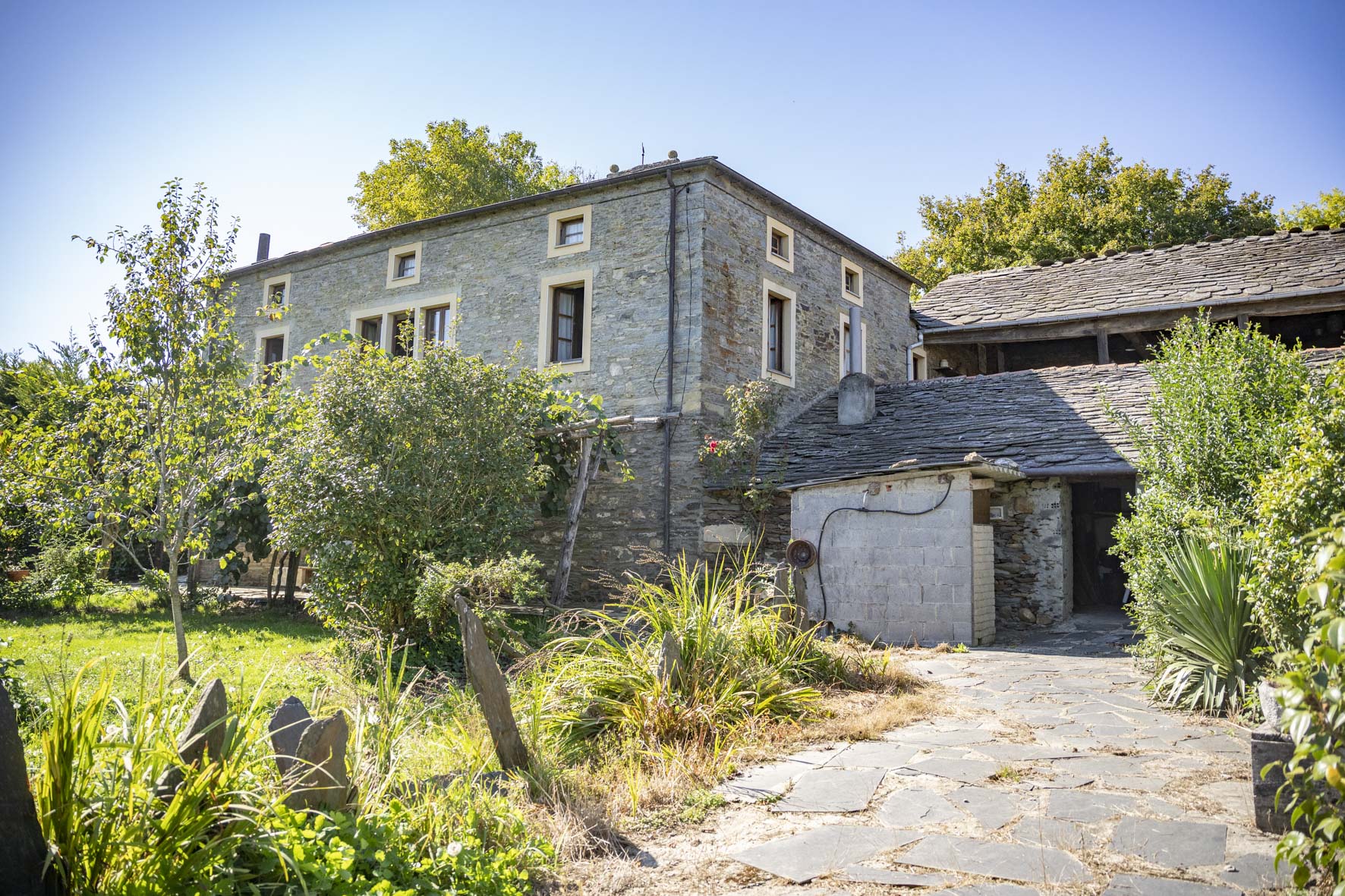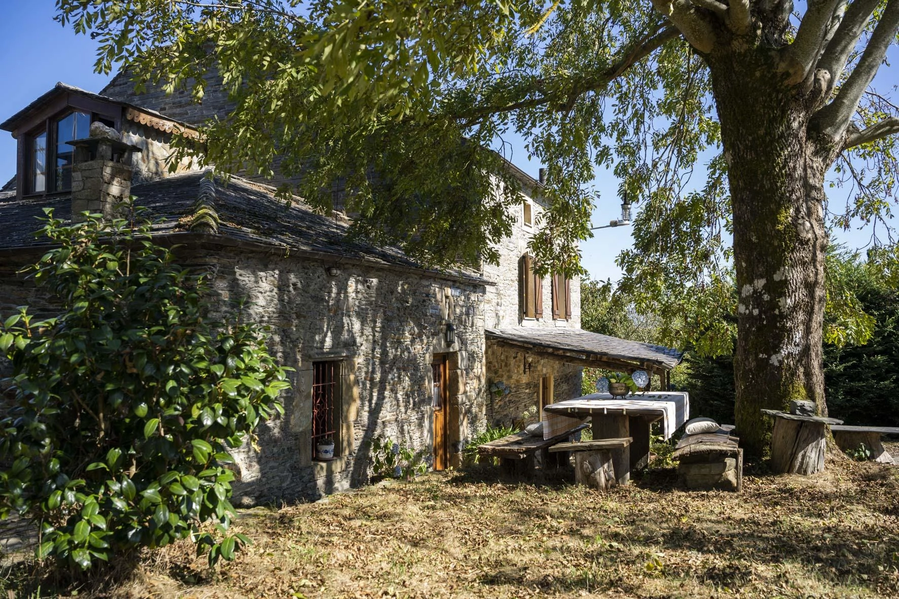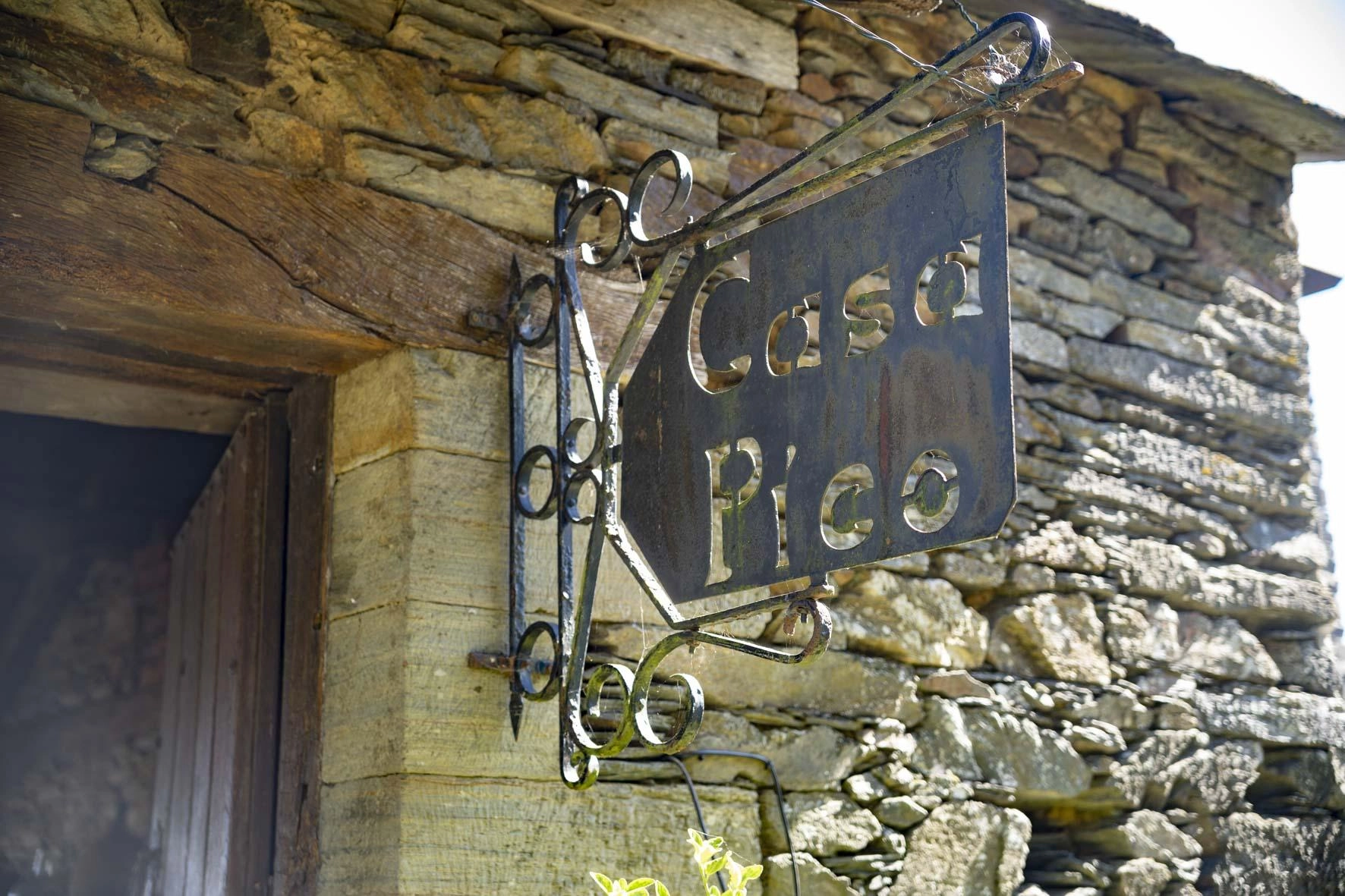 Al entrar a la casa se suele entrar en el bajo donde encontramos con un autentico museo esta la leñera, una colección de herramientas antiguos, un alambique, un horno de pan. Todo debajo de una balconada tradicional impresionante con una mesa de comedor para comer cuando el tiempo lo permite.