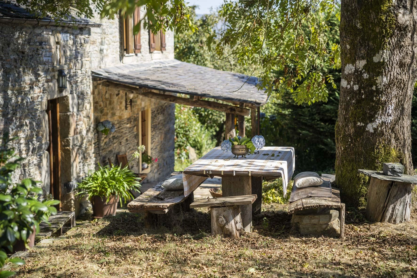 Ha sido hecho para disfrutar con varias mesas debajo de los arboles dando sombra. Buena parte de la laterales de la casa tiene sombra de kiwis que con su aroma son una delicia.