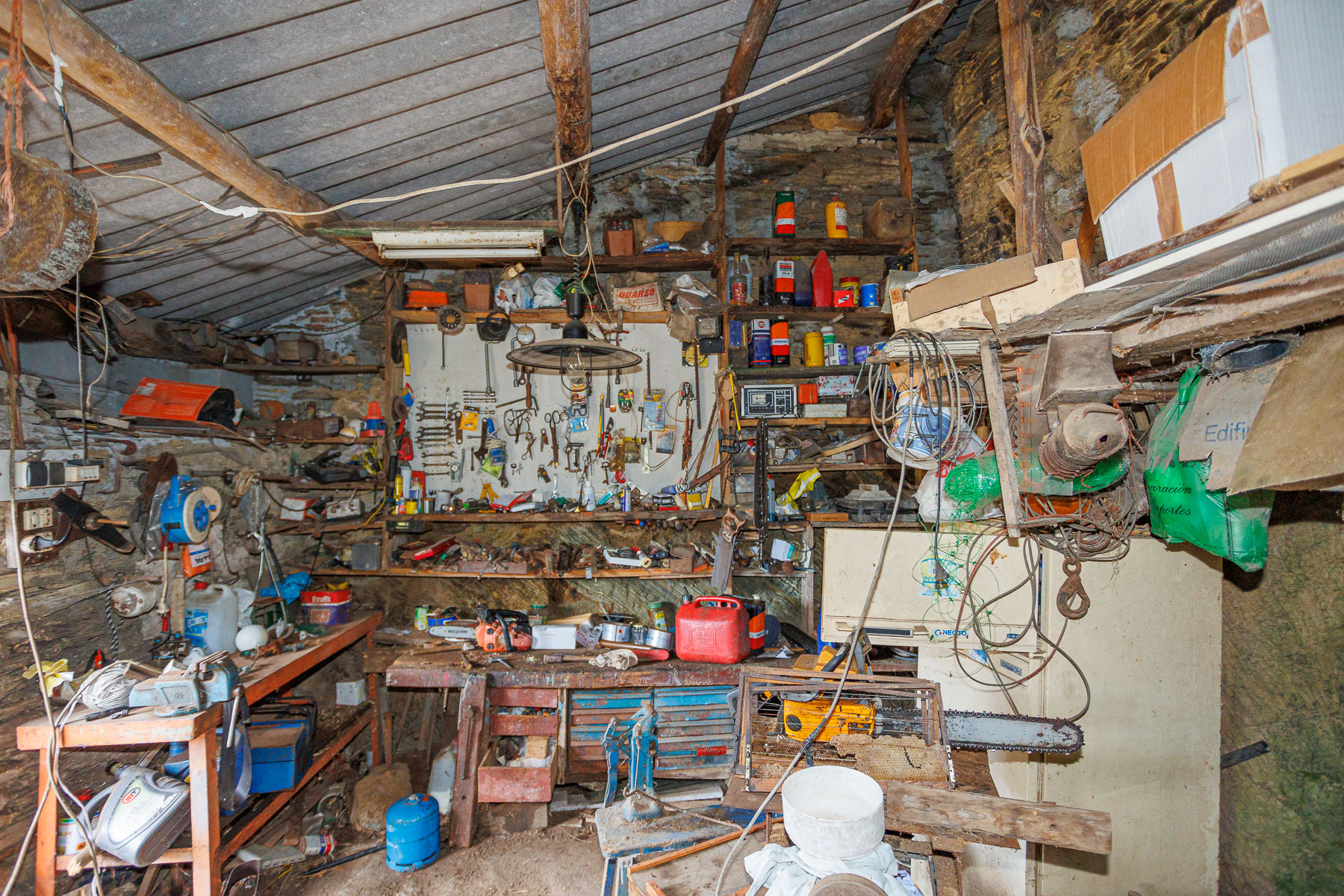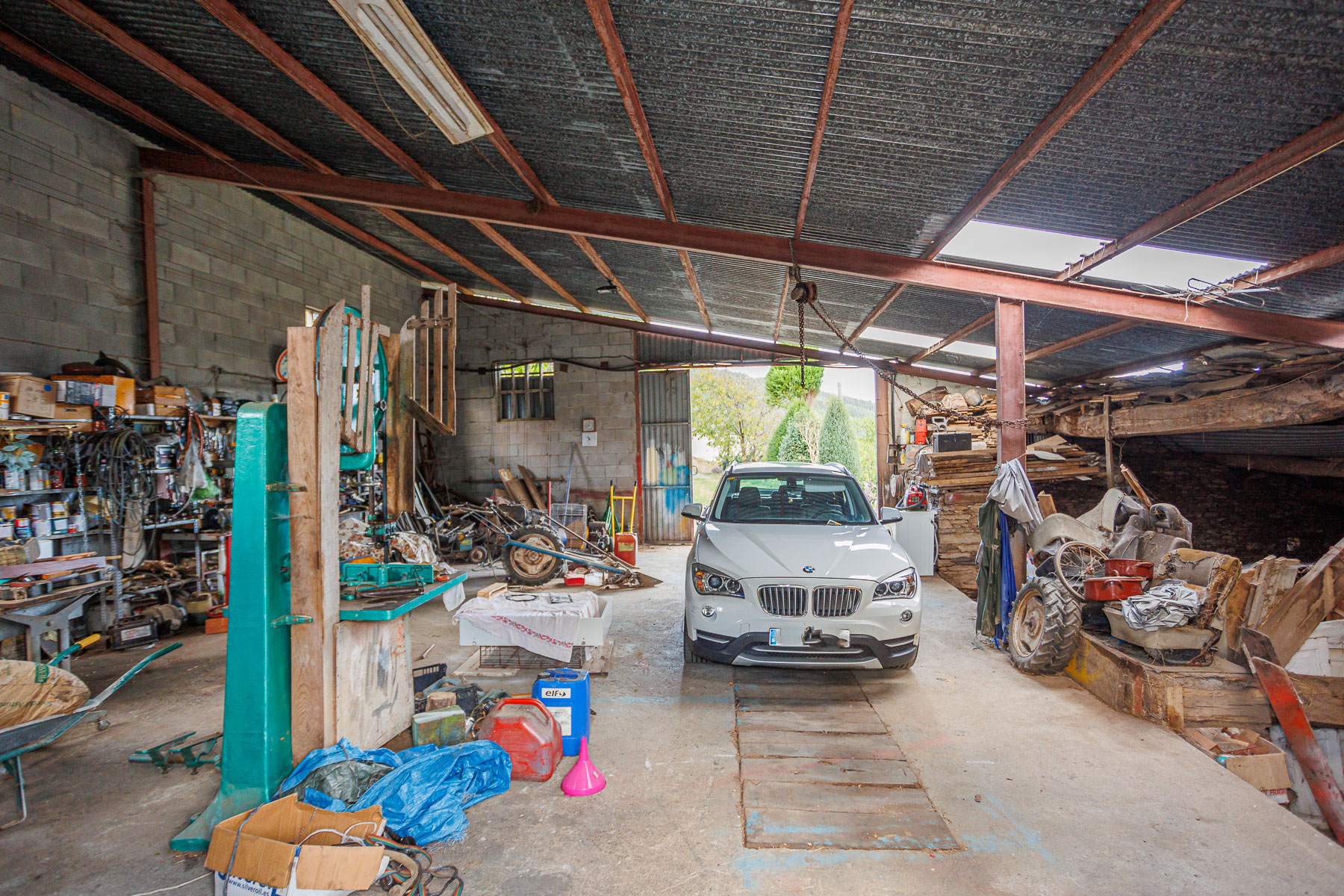 Dentro de la propiedad aparte de la gran casa principal disponemos de varios edificios aledaños entre los que destaca un grandísimo garaje taller donde tenemos desde una gran sierra de correas hasta un foso para el mantenimiento de los vehículos. Este edificio en su parte inferior tiene unas antiguas cuadras, si se quisiera de este garaje podríamos reformarlo y hacer una gran segunda vivienda.