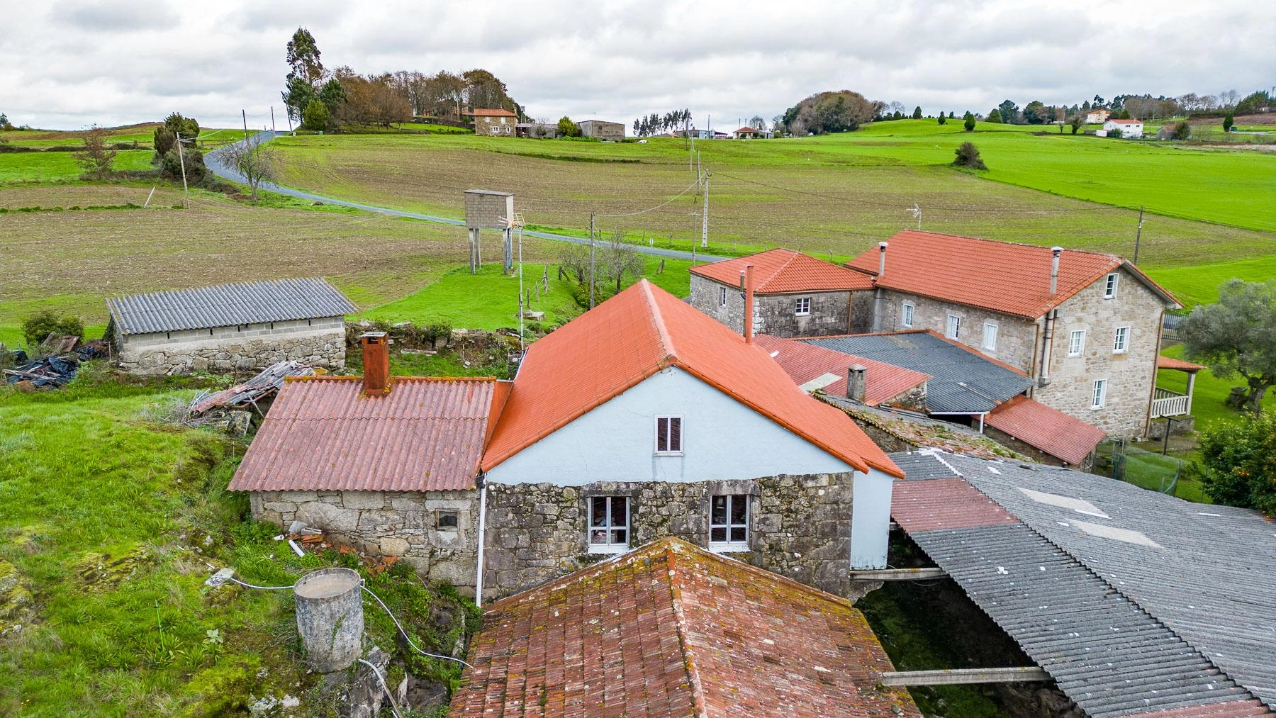 Bonita casa de pueblo con grandes alpendres y casi 3 Hectáreas de finca Esta finca sería ideal para caballos, dado las grandes superficies de alpendres con posibilidades de montar boxes et. Emplazada en Irixoa, una zona con una microclima muy especial, hasta se producen naranjas en la finca que demuestra lo benigno del clima.