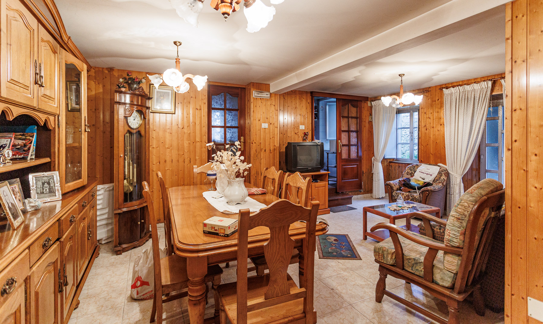 La casa, construida en granito, está en buen estado, únicamente necesitaría pintarse, dado los años que lleva sin uso. Tiene una superficie de 183 m2 en dos plantas. A la vez, tiene dos almacenes de piedra adosados, junto con otras naves que suman un total de más de 500 metros.