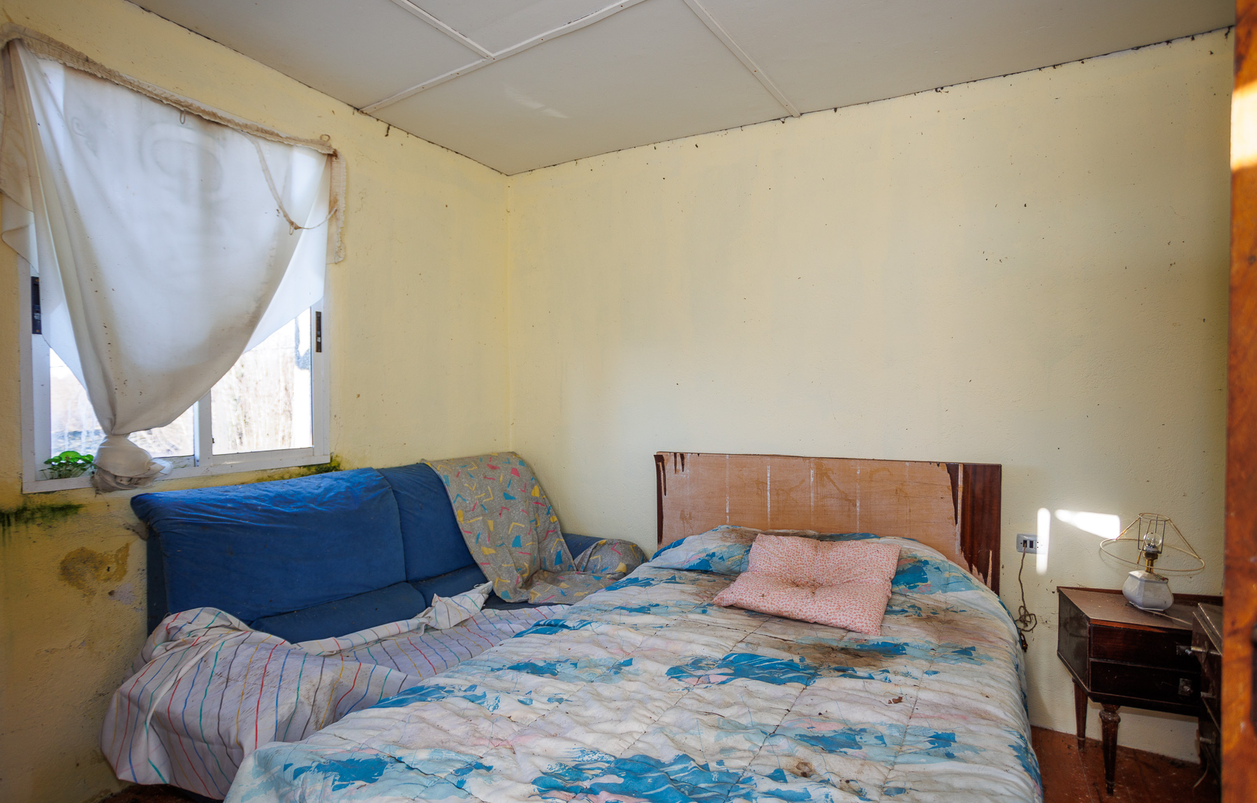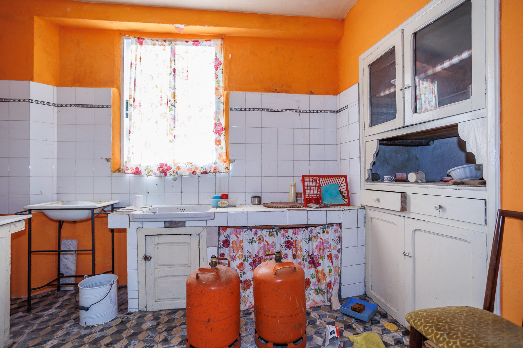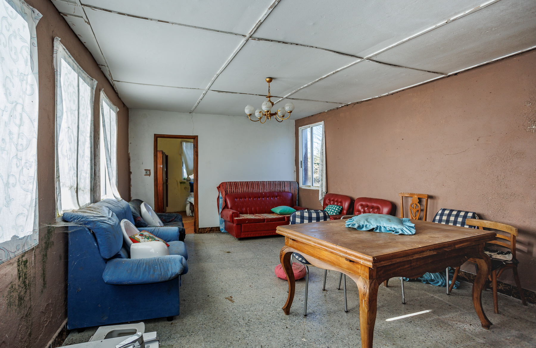 La casa principal, más moderna, se distribuye en dos plantas. En la planta baja, encontramos una cocina con estufa de leña y una habitación, y subiendo por las escaleras que dan acceso a la planta de arriba, llegamos al salón y a otra habitación.