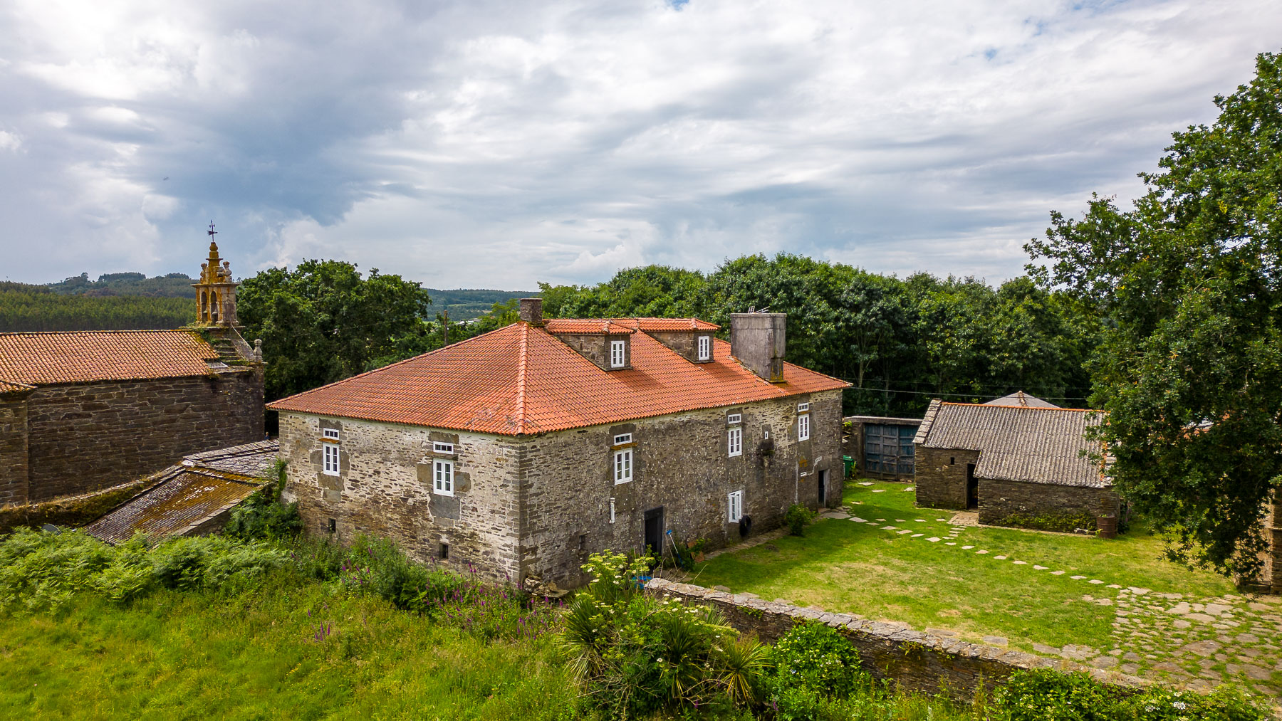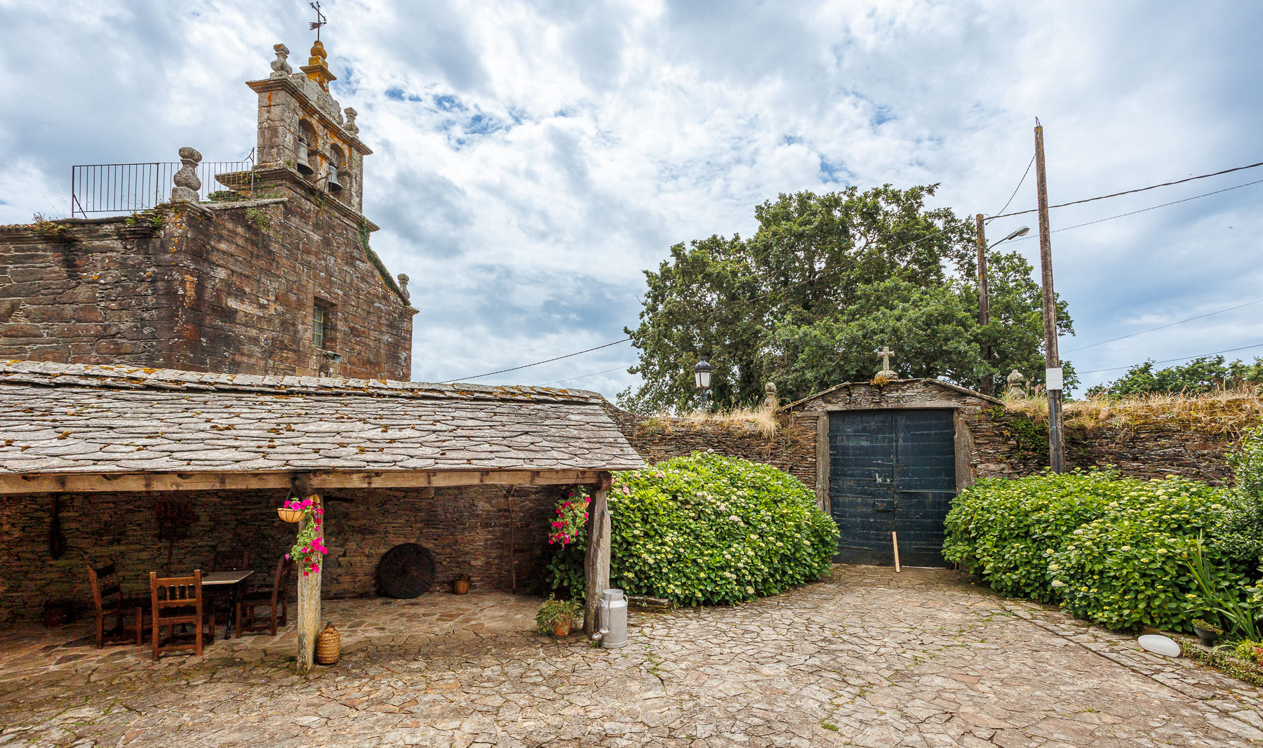 Se trata de un precioso pazo todo rodeado de un gran muro de piedra. En un estado maravilloso, amueblado y al lado de una iglesia, puede adivinarse que ha sido la casa más importante del lugar. Está en una finca cerrada sobre sí misma de unos 8750m2, y por el medio de la misma corre un regato de agua "canalizado" que desemboca en una preciosa fuente de piedra al lado del Pazo. Actualmente, el Pazo ha sido convertido en un hotel para los peregrinos que pasan únicamente a 1km de la propiedad. Tiene capacidad para 15 personas tal y como está. Funciona con éxito en relación con el tema de alquiler vacacional. Las posibilidades que tiene de ampliación son grandiosas.
