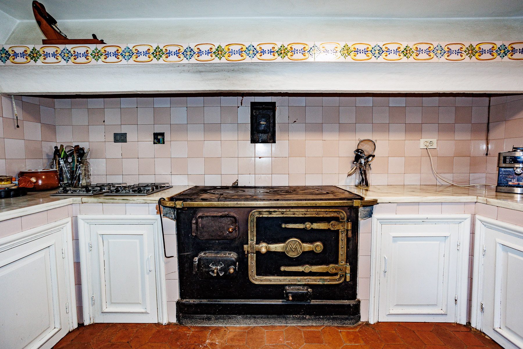 Hacia el fondo, además de la salida al jardín posterior, nos da acceso a un recibidor con una cama (lo usa su propietario como dormitorio en este momento), una cocina muy bonita con una bilbaína que funciona bien, una oficina, un cuarto de lavandería, un cuarto de baño con ducha. Puede hacer otro gran apartamento independiente.