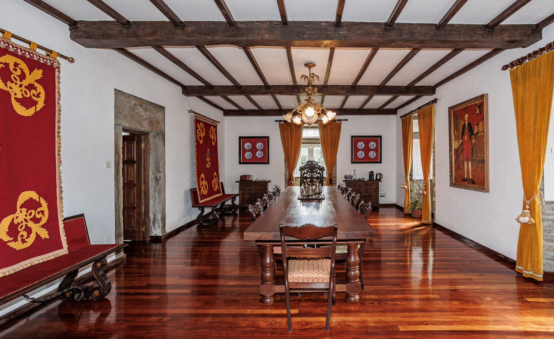 El cuerpo del Pazo son unos 300 m2 por planta, por dos plantas más un bajo cubierta. En total unos 700m2.