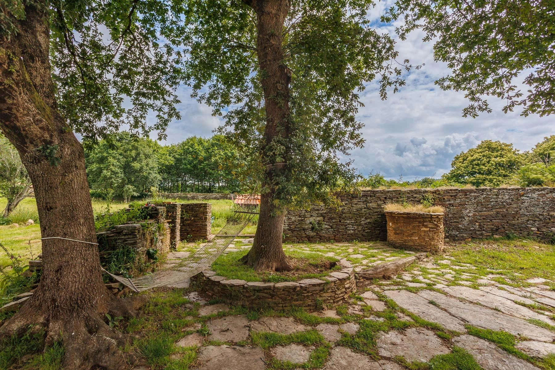 En el jardín por la parte posterior, completamente amurallado, es donde encontramos un gran hórreo (que podría rehabilitarse como apartamento o interesante espacio común). La casa de los caseros (de aproximadamente 80m2 ), el antiguo pajar o granero (sobre 80m2 que daría para dos plantas, al menos en parte del edificio), el palomar, que es precioso y bien conservado y más de 8000 metros de un terreno muy fértil.