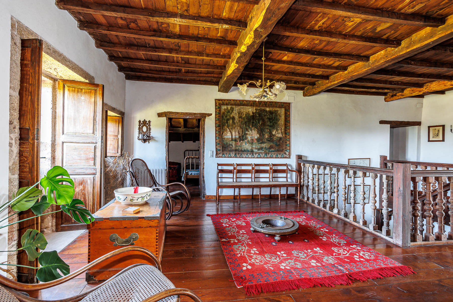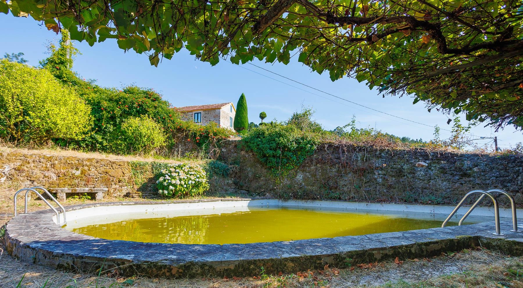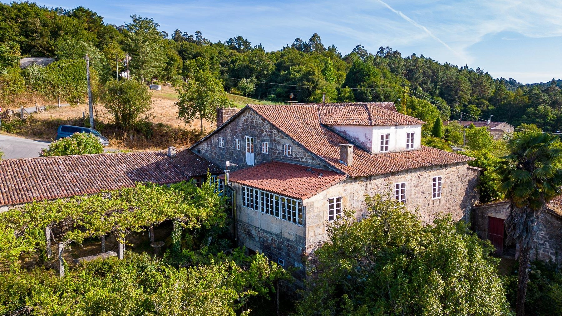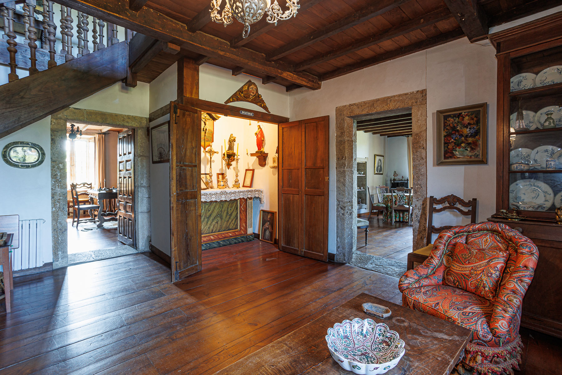 En la venta se incluye además una parcela contigua de unos 6.500 m2 con árboles ornamentales (camelios, catalpas, …), viñas y frutales, un estanque rodeado de bojs de tamaño arbóreo, una pérgola con mesa y banco de piedra y una fuente natural empedrada. A 25 km de Santiago de Compostela, A Coruña, se encuentra esta casa señorial construida en 1751. La superficie computable de la casa es de 545,64 m2, en una parcela de 1.000 m2.