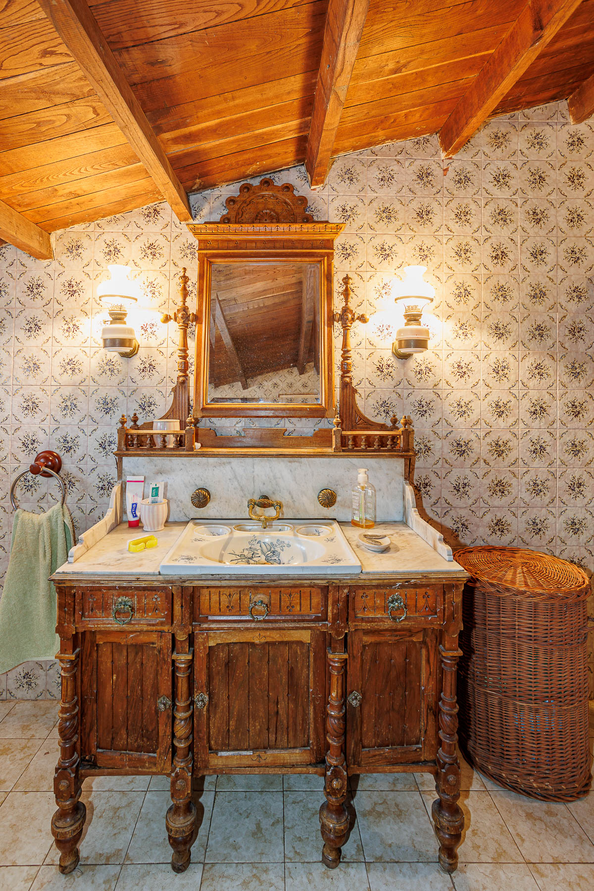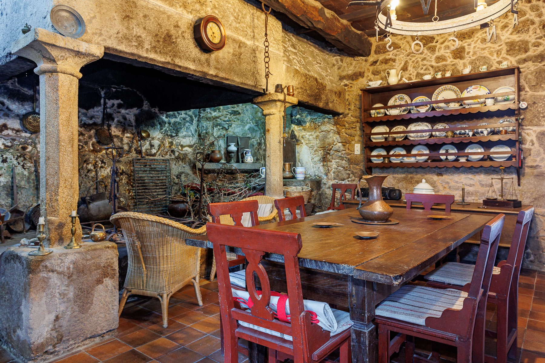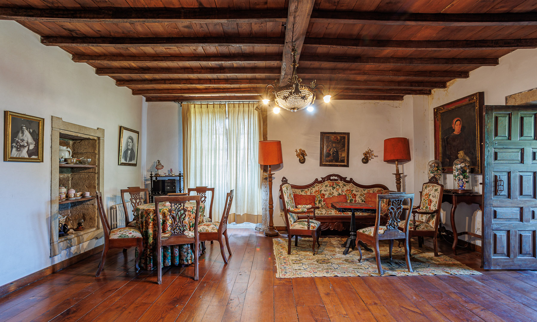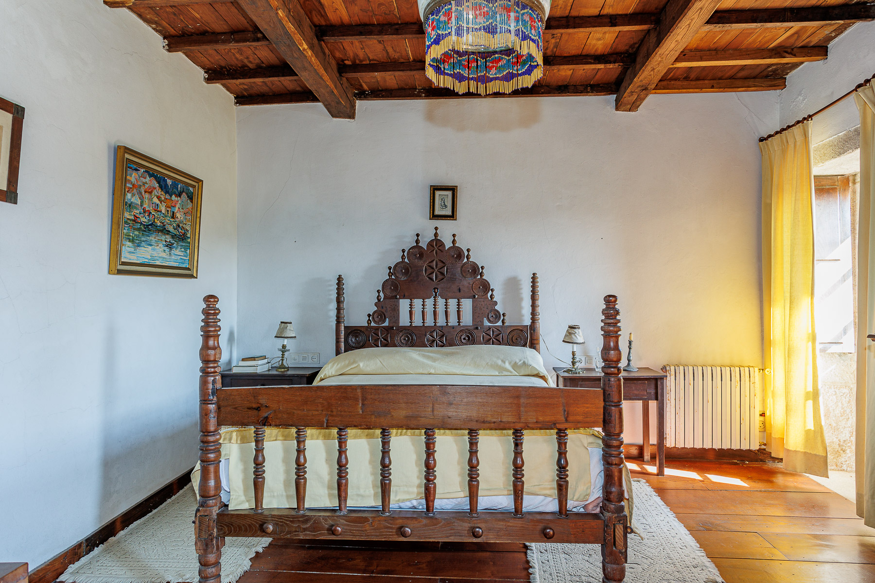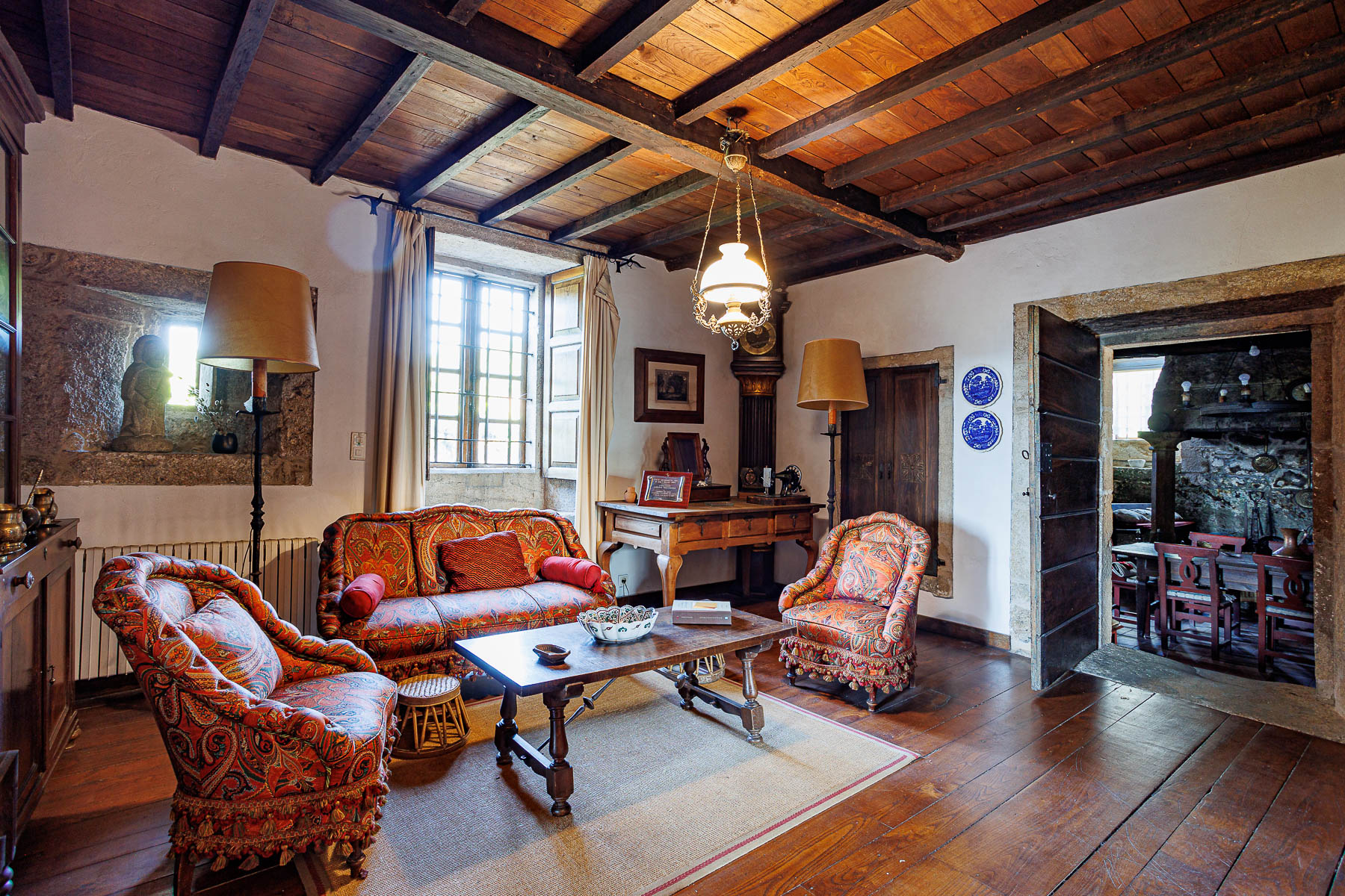 En la venta se incluye además una parcela contigua de unos 6.500 m2 con árboles ornamentales (camelios, catalpas, …), viñas y frutales, un estanque rodeado de bojs de tamaño arbóreo, una pérgola con mesa y banco de piedra y una fuente natural empedrada. A 25 km de Santiago de Compostela, A Coruña, se encuentra esta casa señorial construida en 1751. La superficie computable de la casa es de 545,64 m2, en una parcela de 1.000 m2.